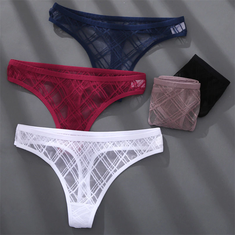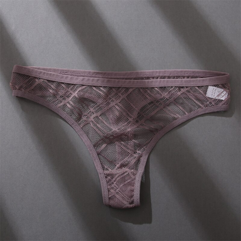 Billionm Women Sexy Underwear Low Waist Thong Grid Perspective Underpant for Women Breathable Panteis Female Soft Intimates Lingerie