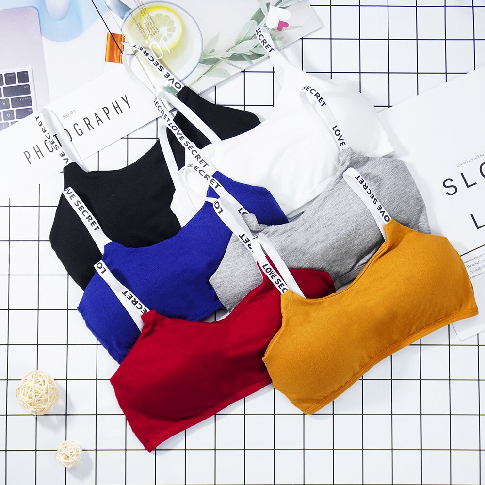 Billionm Women Wire Free Bra Back Closure Half Cup Padded Push Up Underwear Letter Straps Seamless Three Hook-and-eye Bralette