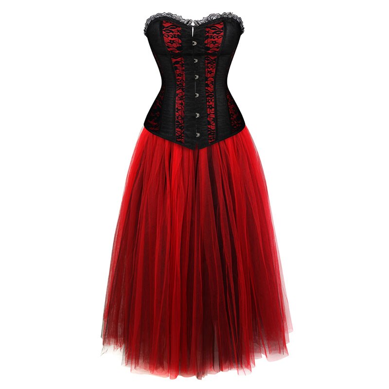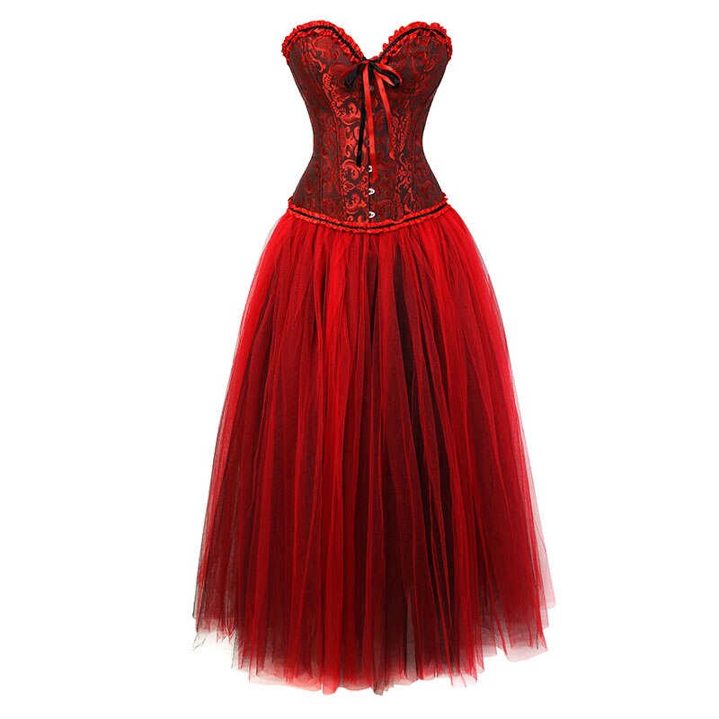 Billionm Womens Vintage Brocade Corset Lingerie Top with Floor Length Skirt Sexy Corset Bustier Dress Set Girl's Dancing Party Costume