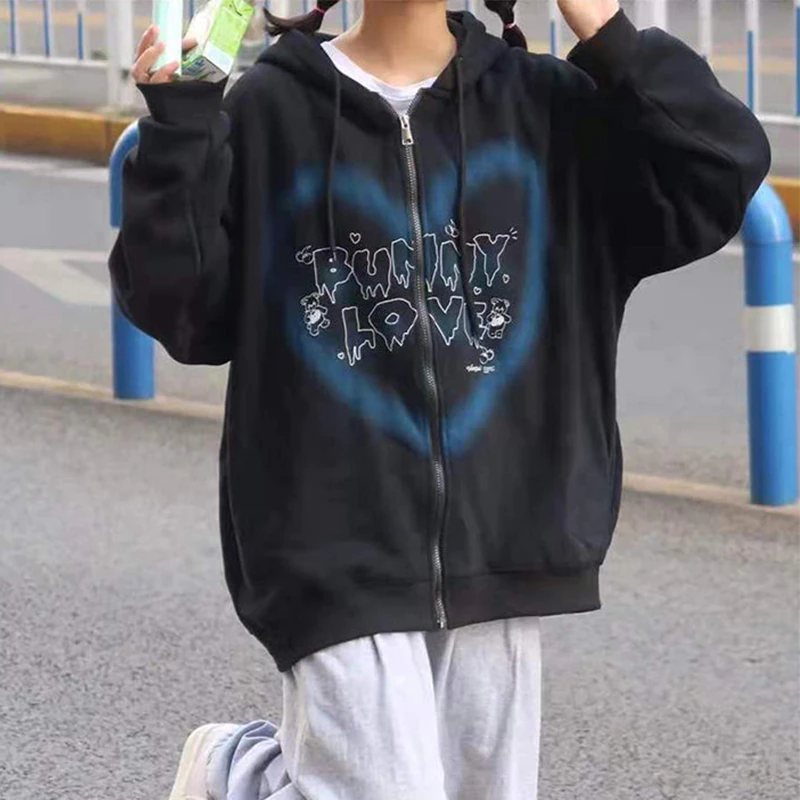 Billionm Y2K Harajuku Korean Style Loose Skeleton Zip-Up Hoodie Grunge Long Sleeve Gothic Hooded Jacket Retro Coat Oversized Sweatshirt