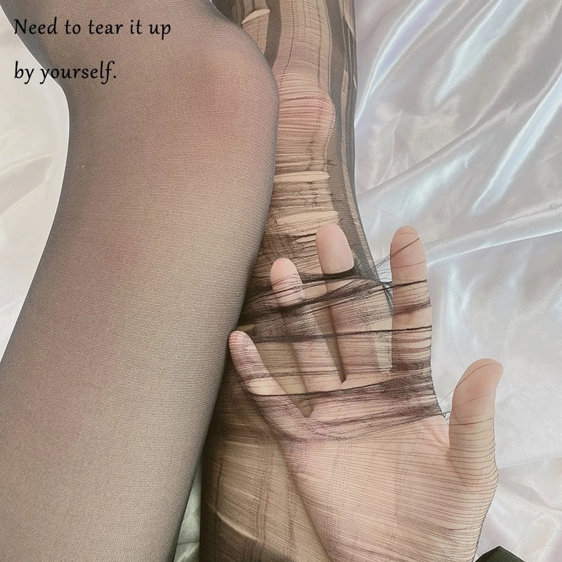 Black Temptation Sexy Tearable Pantyhose Soft Summer Transparent Shred Stockings Tear Off Stocking Disposable Pantyhose