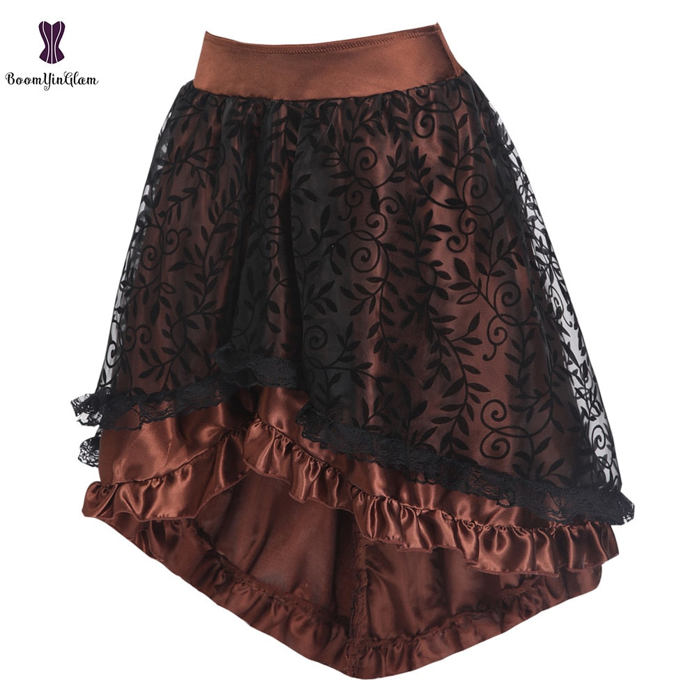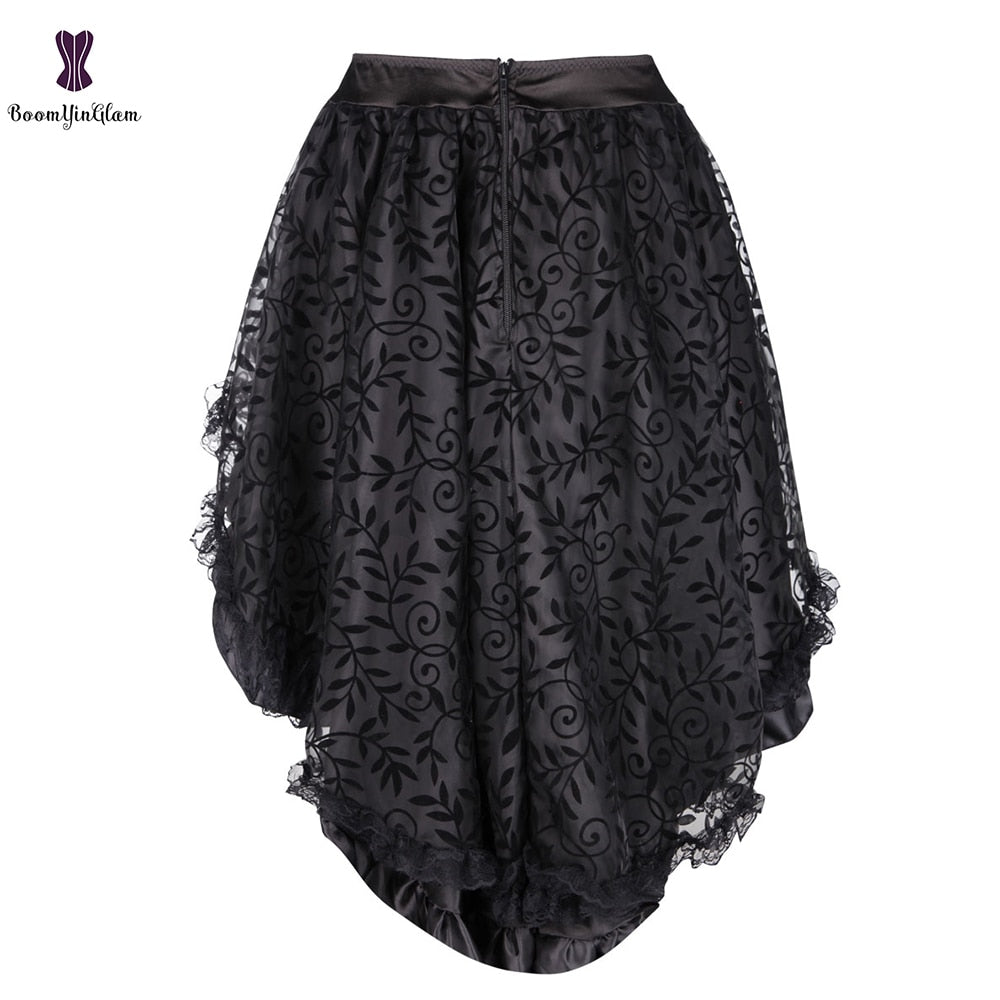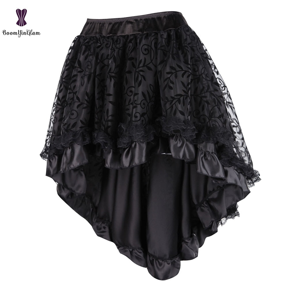 Black Women's Victorian Asymmetrical Ruffled Satin Lace Trim Gothic Skirts Vintage Corset Steampunk Skirt Cosplay Costumes 937#