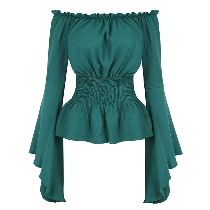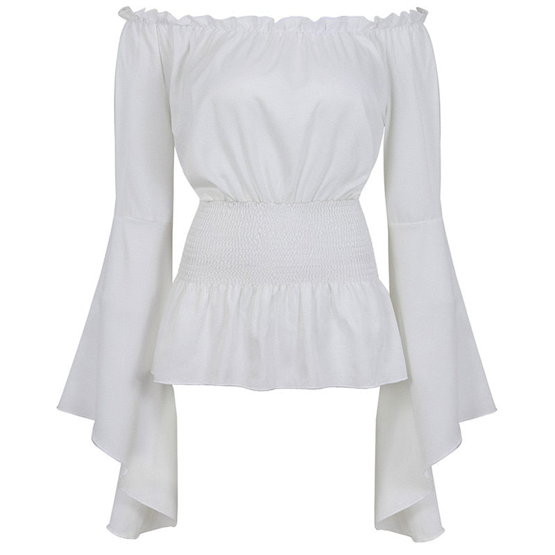 Blouse Women Long Sleeve Renaissance Medieval Chemise Victorian Pirate Gothic Retro Peasant Wench Off Shoulder Shirt Top Costume