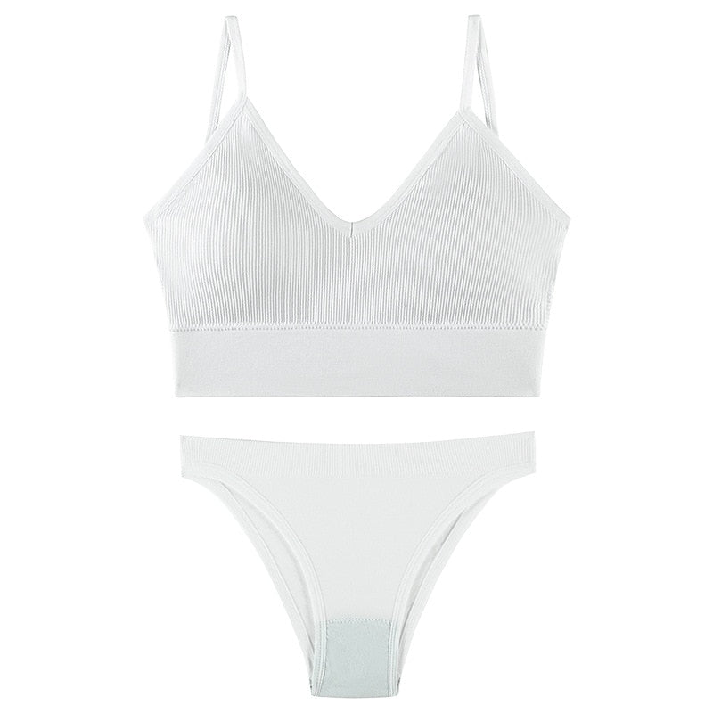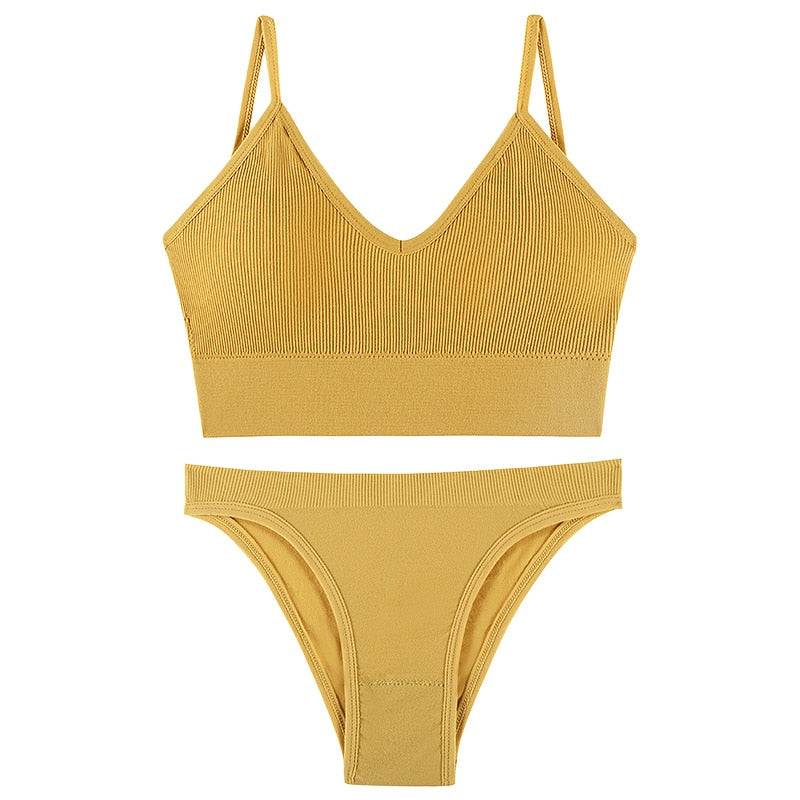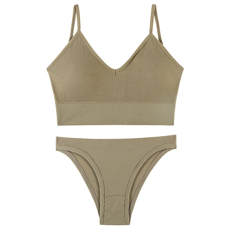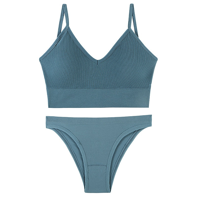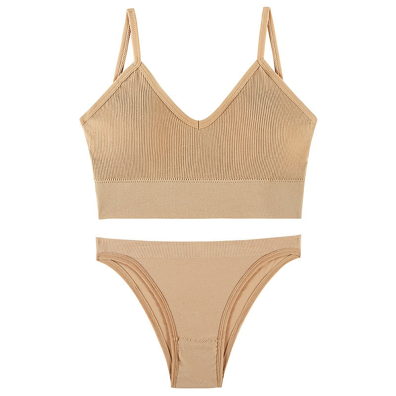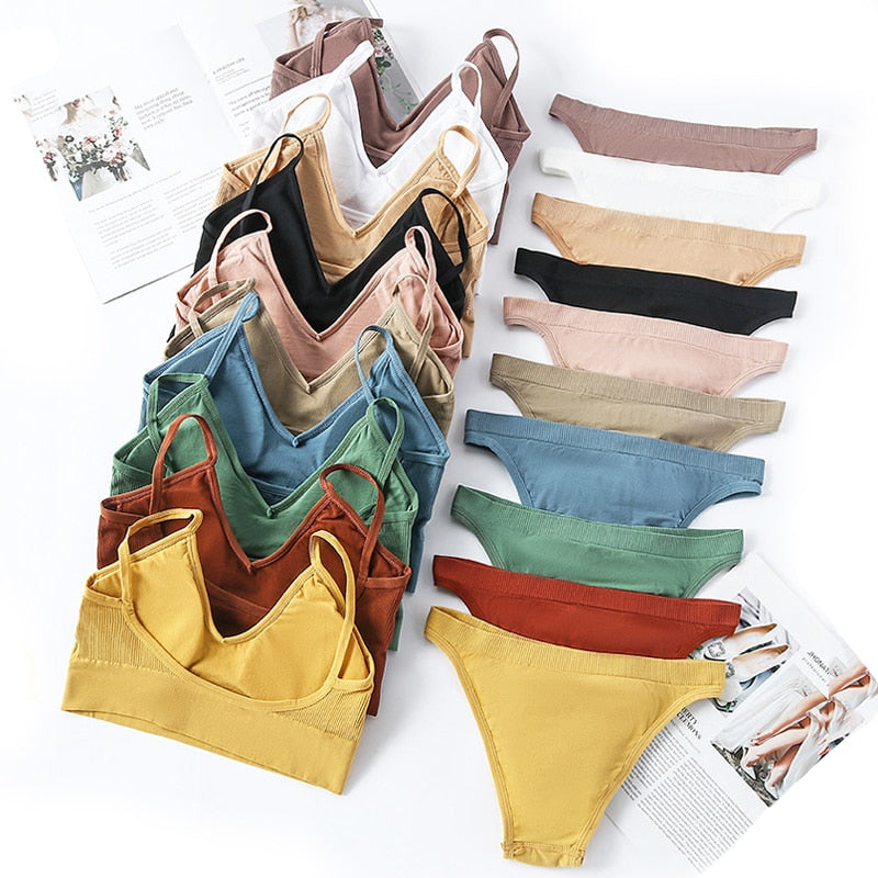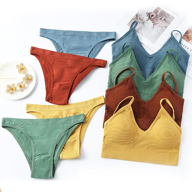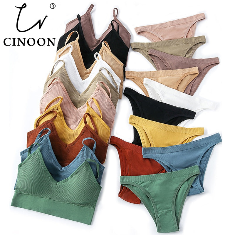 CINOON Women Seamless Bra Set Sexy Low Waist Panties Wire Free Bra Bralette Padded Lingerie Brassiere Soft Female Underwear Set