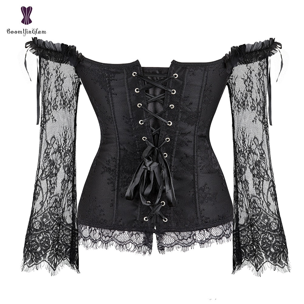 Corset Top Bustier Lingerie Women with Long Sleeves Renaissance Plus Size Lace Floral Sexy Costumes Burlesque Red Black
