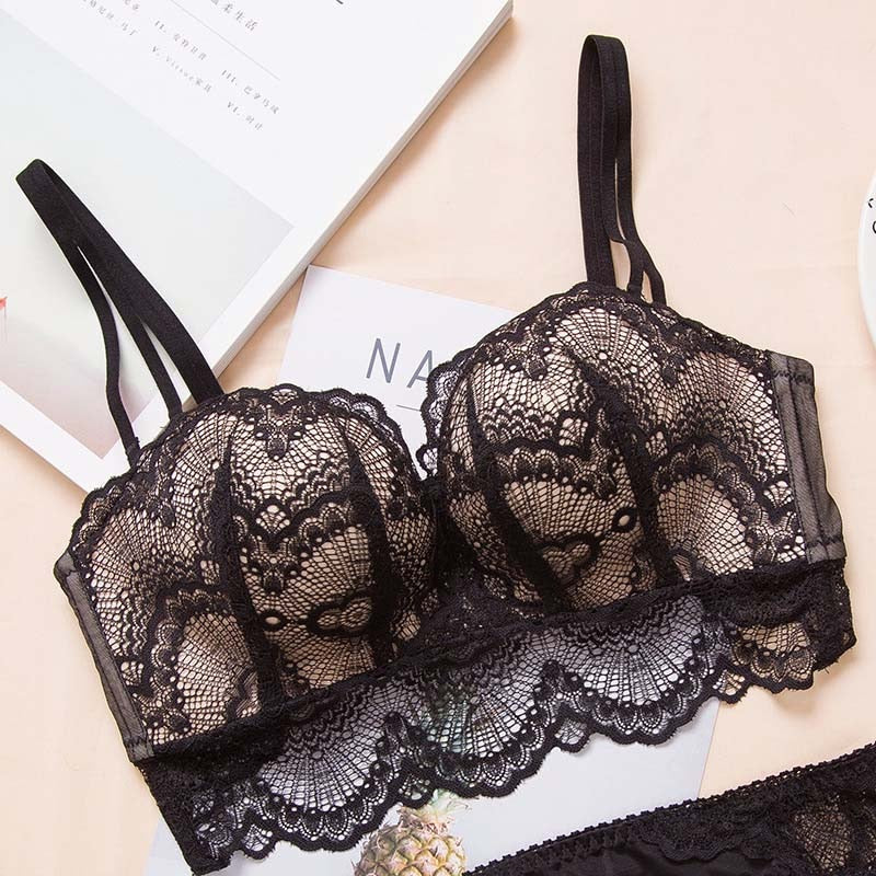 DERUILADY Lace Floral Wireless Bra Sexy Backless Lingerie Comfortable Adjustded Bras For Women Underwear Push Up Bralette Top