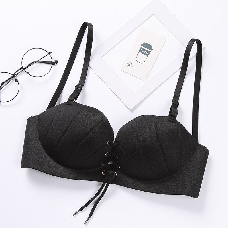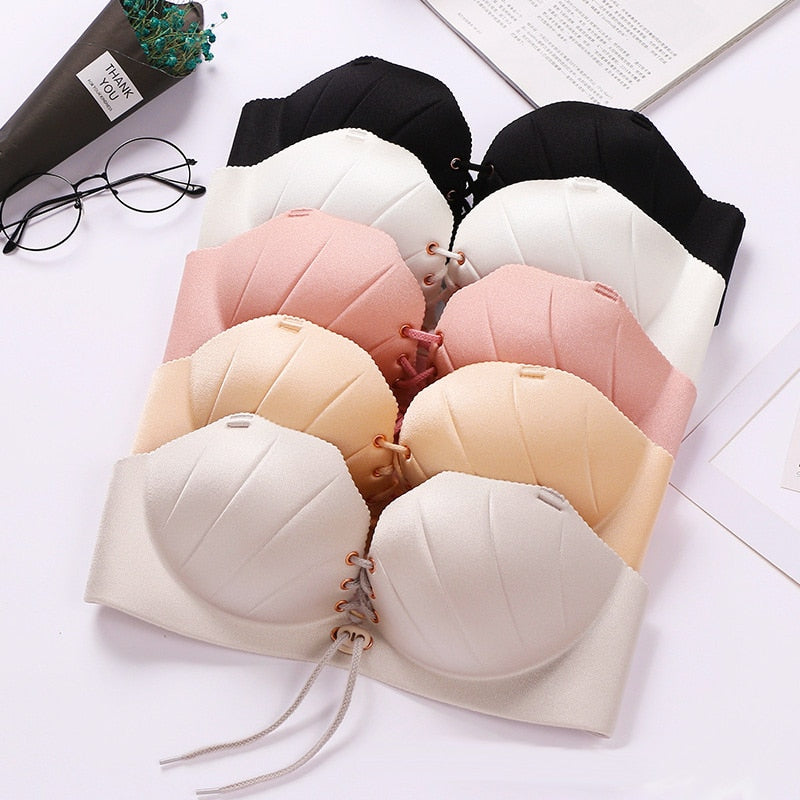 DERUILADY Seamless Backless Drawstring Bra Women Adjusted Push Up Bralette Solid Simple Comfort Wireless Bra Sexy Lingerie
