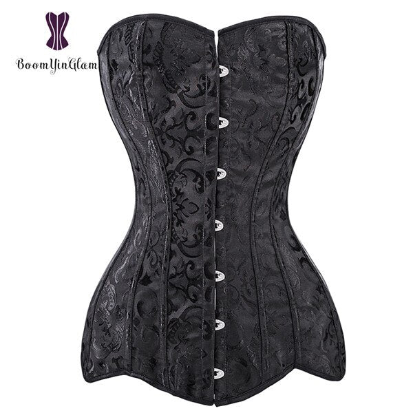 Drop Shipping Corset Long Torso Corsets Cheap Black White Korset Overbust Waist Slimming Floral Bustier Women Plus Size Gorset