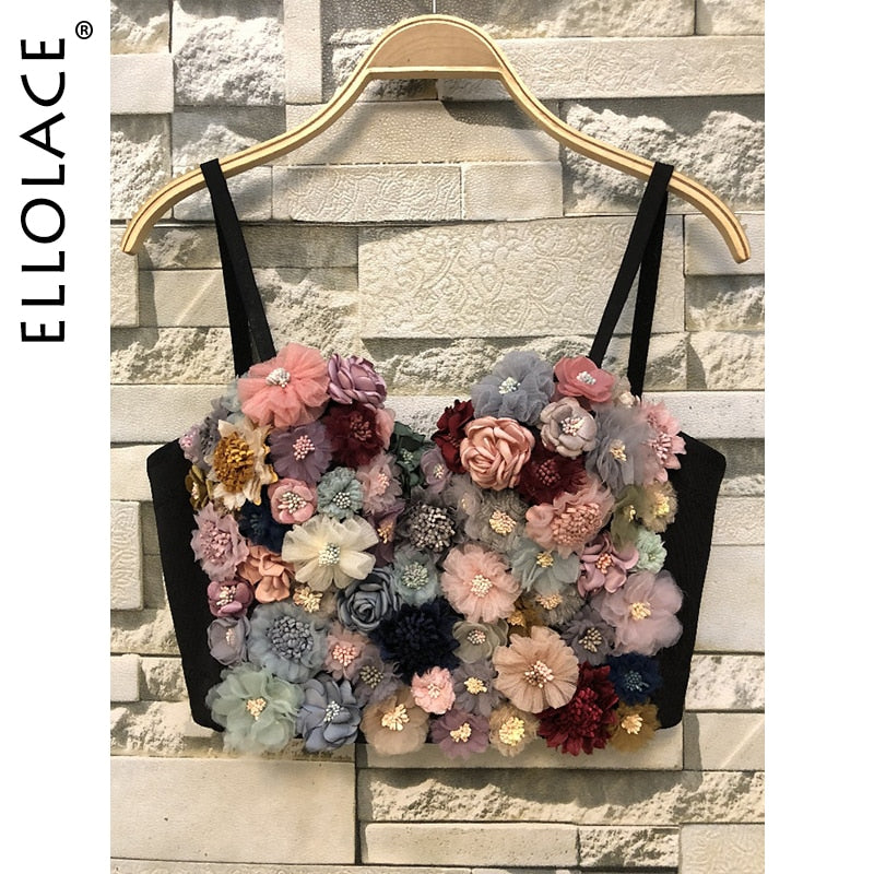 Ellolace 2020 Applique Floral Corselets Women's Bachelorette Bustier Bra Cropped Top Wedding Bralette Vest Sexy Corset Top