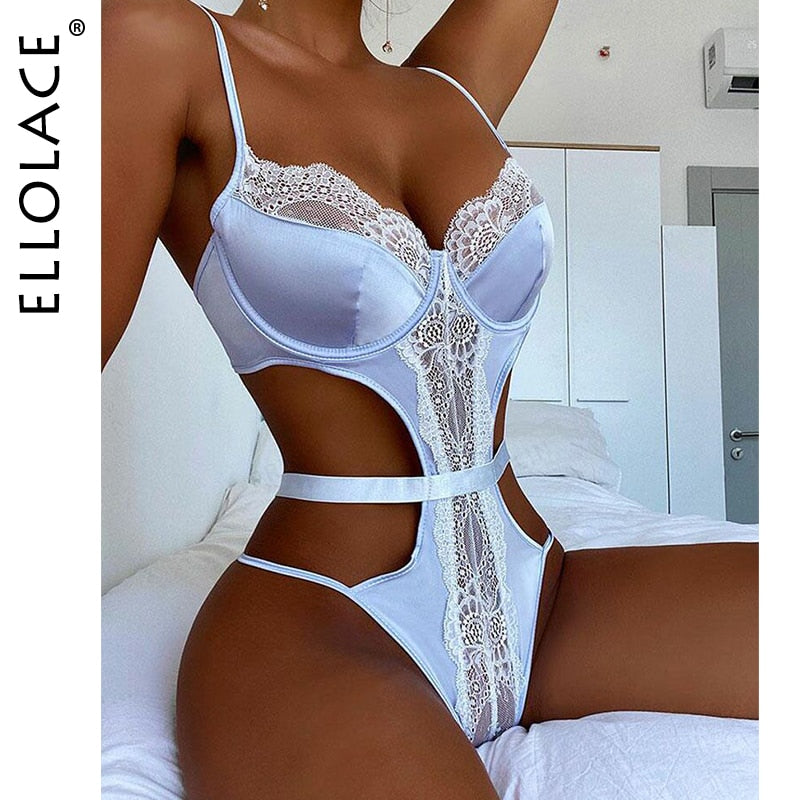 Ellolace Bodysuit Women Lace Sensual Lingerie Sexy Tempting Cut Out Exotic Costumes Patchwork Porn Bottom Whore Sissy Teddies