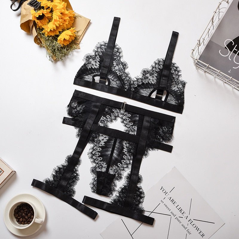 Ellolace Erotic Lingerie Women's Underwear Set Lace Bra Set Sexy Hollow Out Lingerie Set Push up Bra Underwear Set Sexy Lingerie