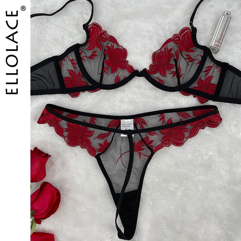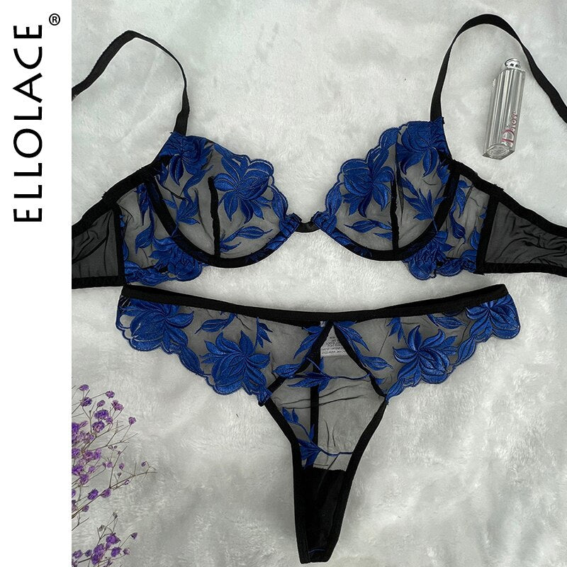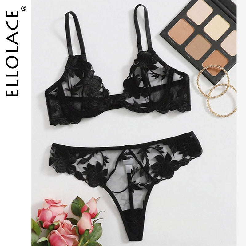 Ellolace Exotic Sensual Lingerie Woman Sexy Transparent Underwear Set Black Erotic Costumes Hot Sex Lace Underwire Intimate