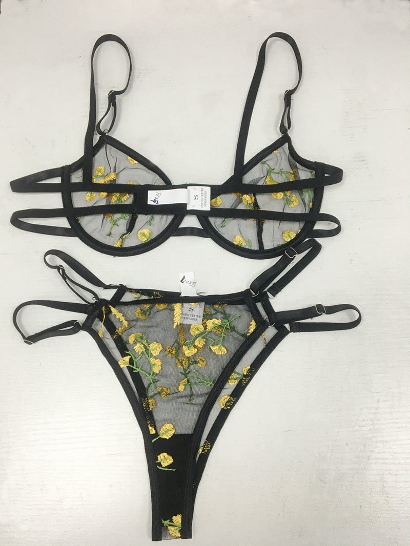 Ellolace Floral Erotic Lingerie Underwire Transparent Bra Push up Underwear Set Exotic Sets Lingerie Set Embroidery Brief Sets
