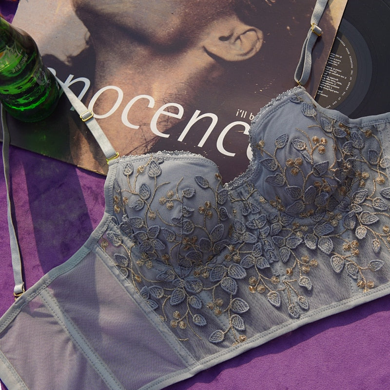 Ellolace Floral Lingerie Set Women's Underwear Sexy Brief Sets 3 Color S-XL Underwear Women Erotic Lingerie Padded Bra Panties