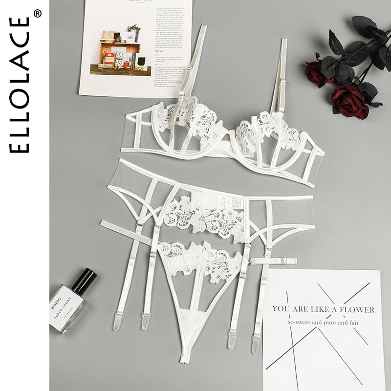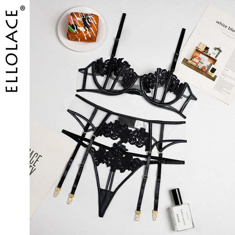 Ellolace Lingerie Exotic Costumes Hollow Out Transparent Erotic Sets Sensual Porn Lace Underwear Intimate Sexy Bottom Whore