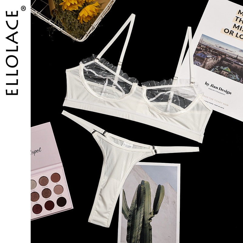 Ellolace Ruffle Lace Lingerie Sexy Women's Underwear Transparent Short Skin Care Kits Sexy Lace Bra Brief Sets Erotic Intimate