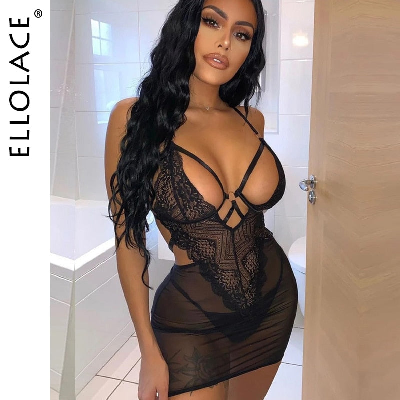 Ellolace Women's Pajamas Transparent Sleepwear Women Night Dress Underwire Pajamas Dresses Nightie Women's Nightgown Nightdress