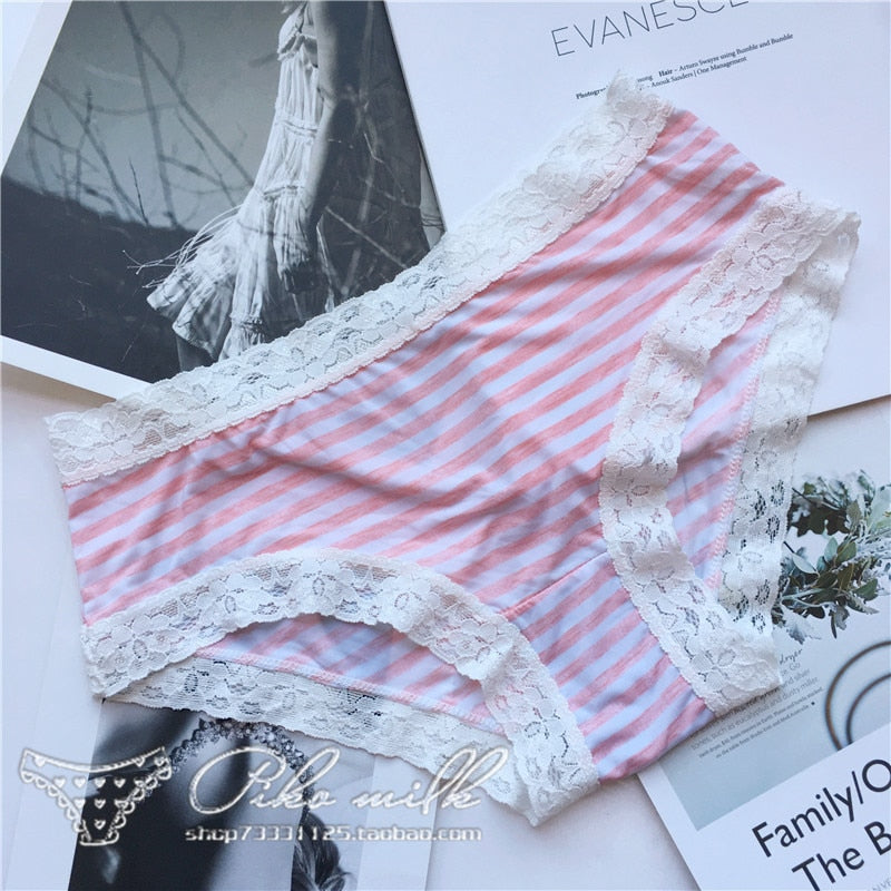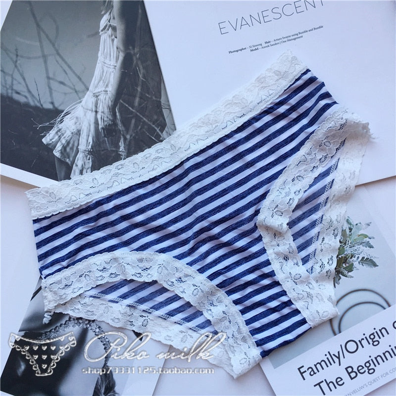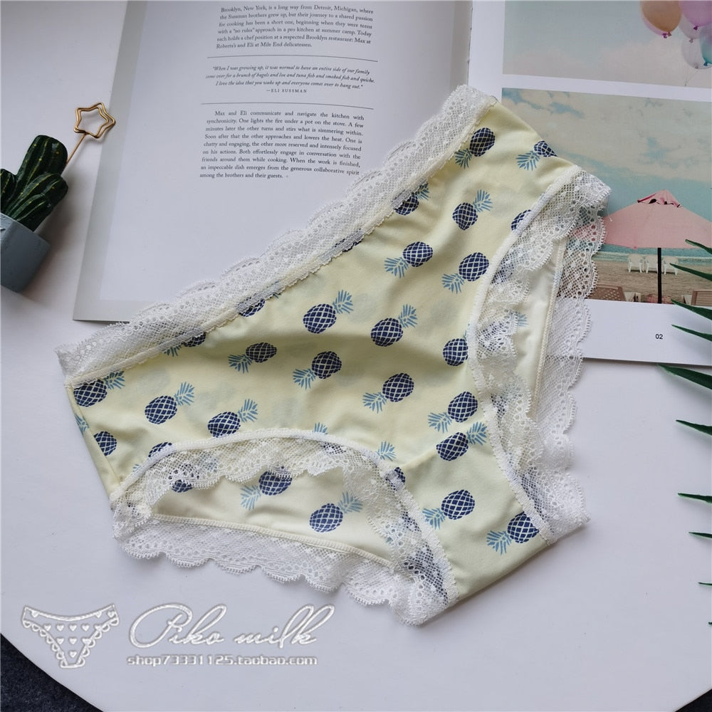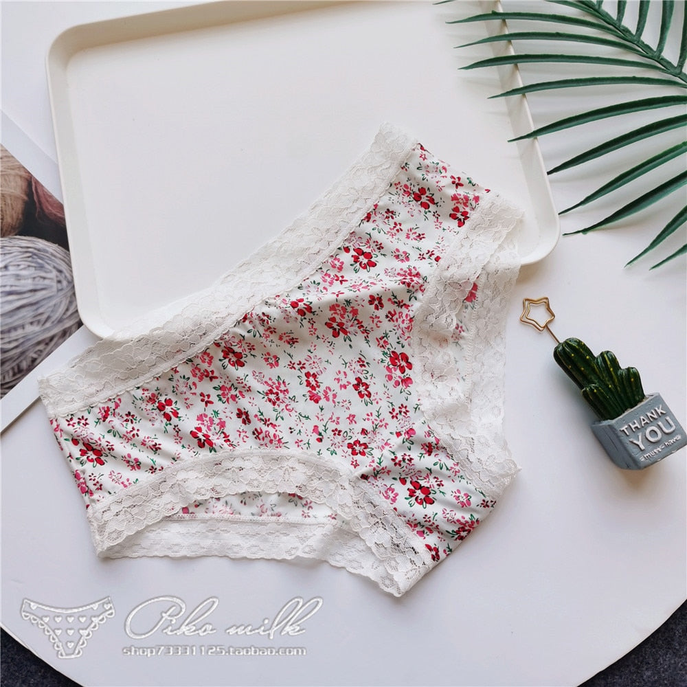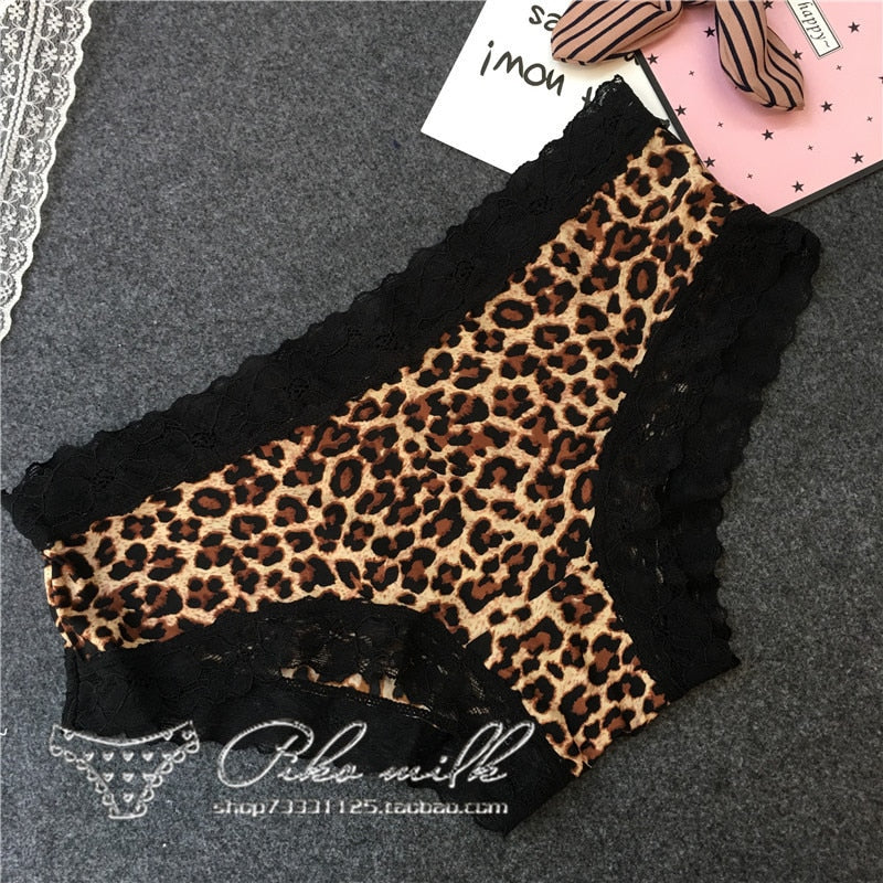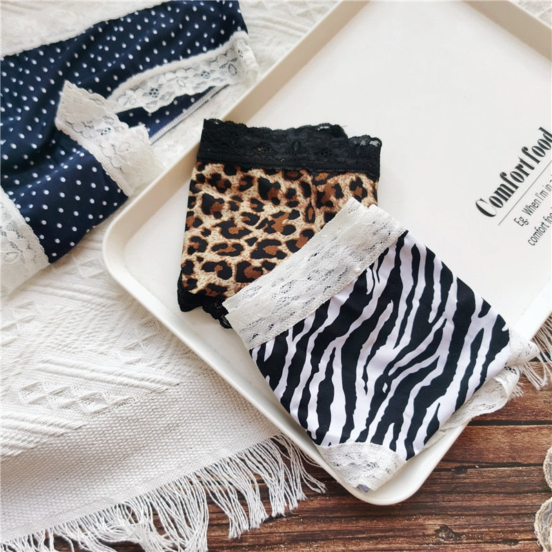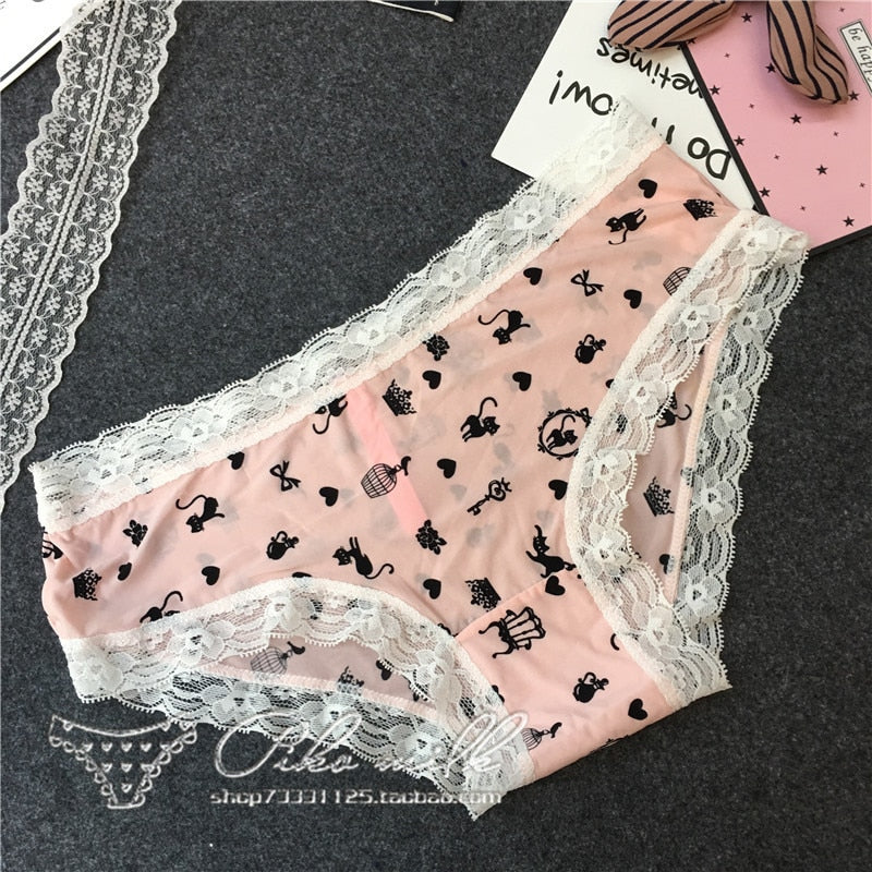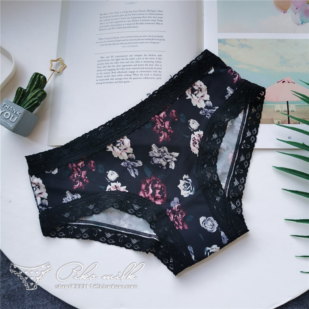 European Style Sexy Underwear Women's Ice Silk Printing Panties Fashion Lace Briefs Ladies Low Waist Underpants Female Lingerie