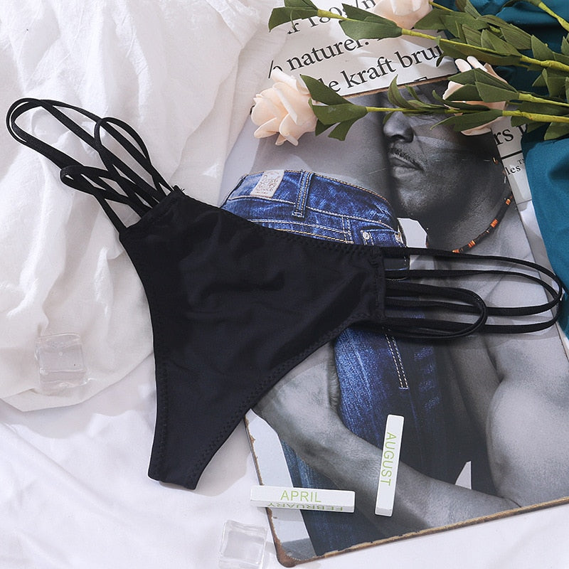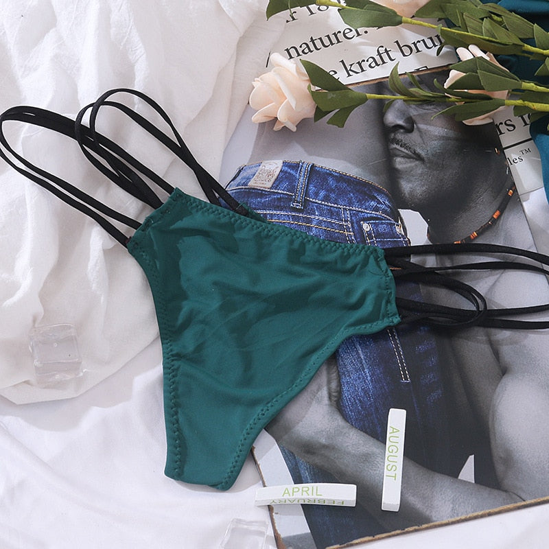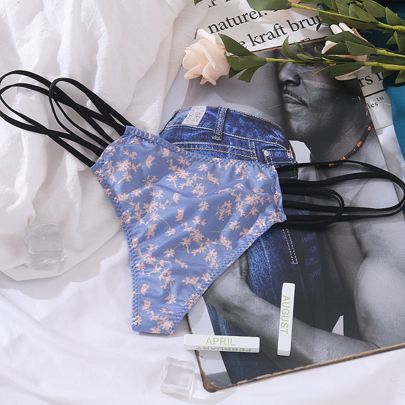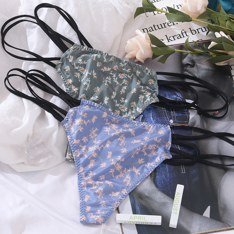 European Style Thong Sexy Leopard Ice Silk Panties Low Waist Seamless Comfort T-Pants Fashion Ribbon Hollow Out G-StringLingerie