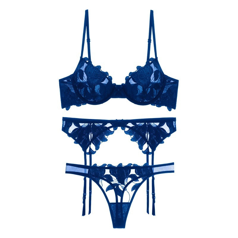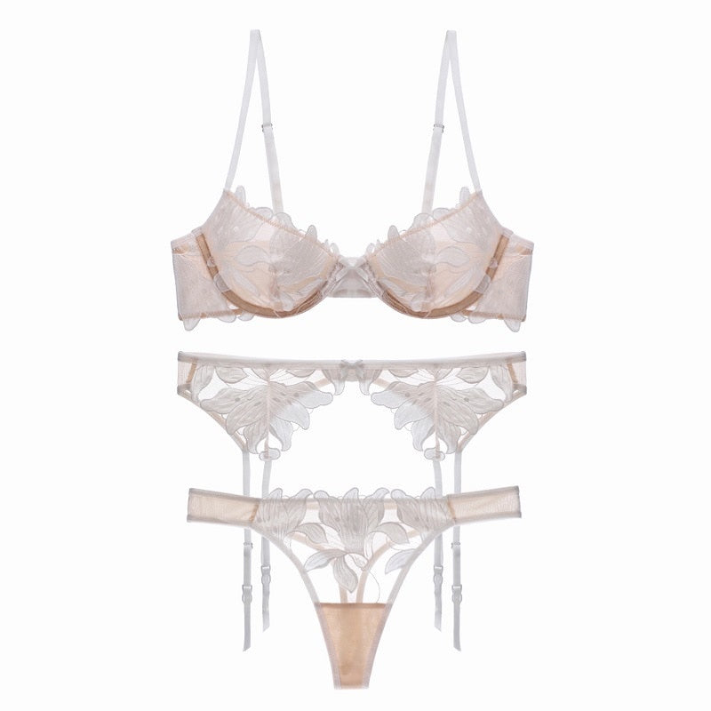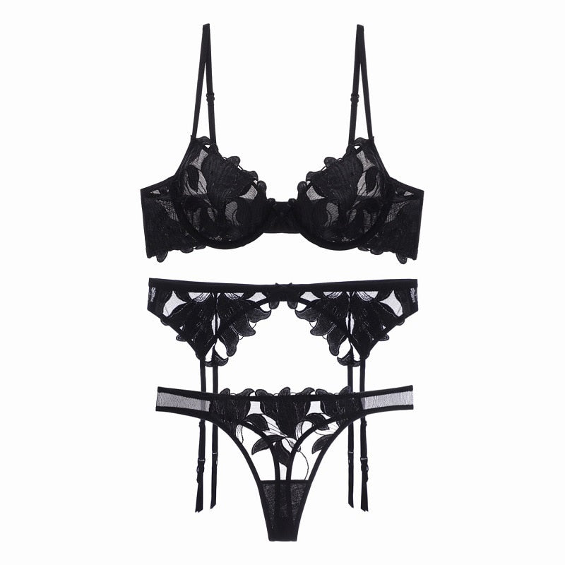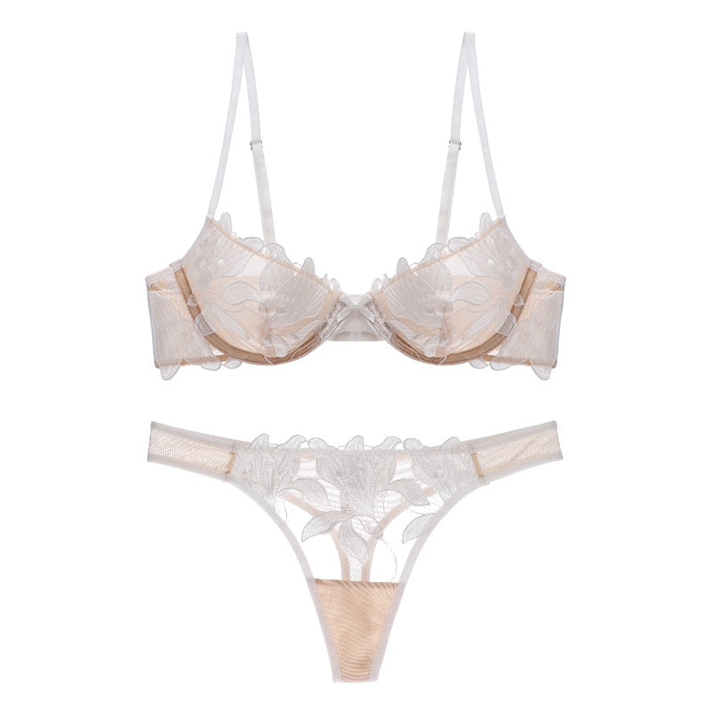Fancy Underwear Lace Women's Bra and Panty Set Floral Embroidery Brief Sets Sexy Thin Bralette Female Erotica Intimates Lingerie