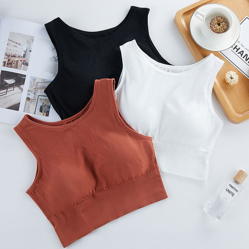 Fashion Women Tank Tops Stretch Crop Top Female Gather Padded Halter Short Tank Top 3 Solid Color Sleeveless Camisoles Lingerie