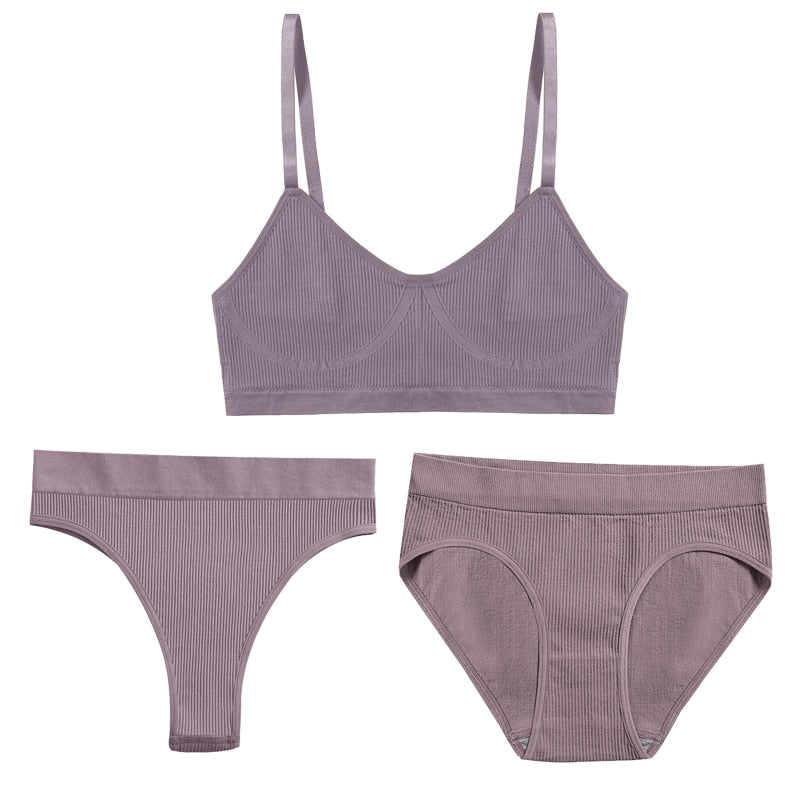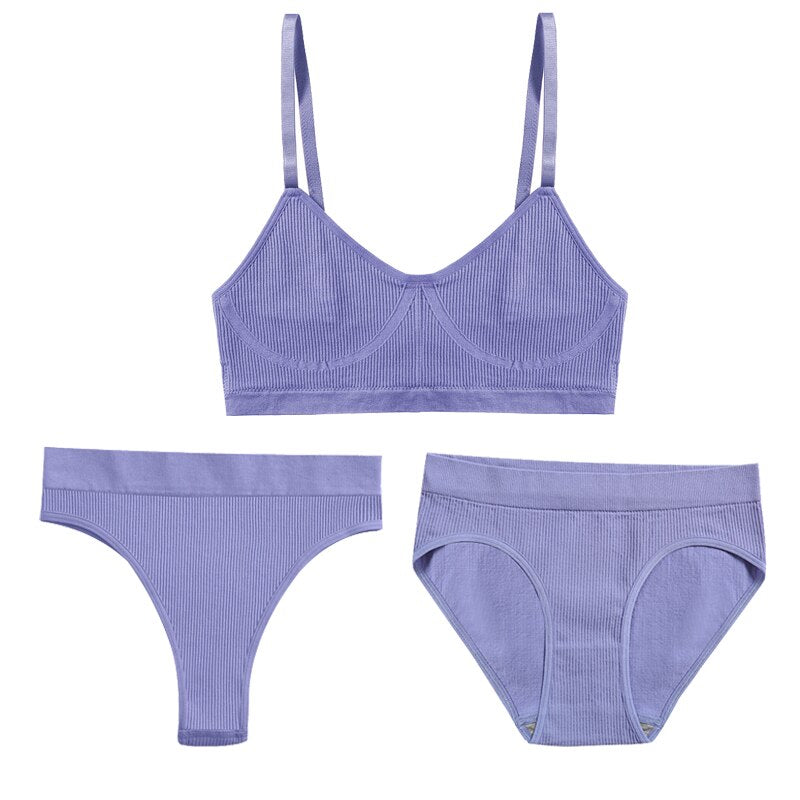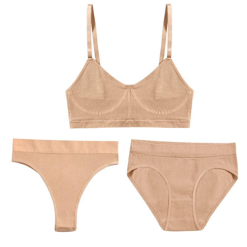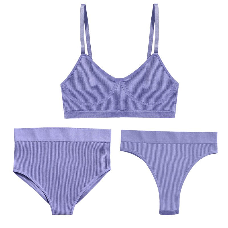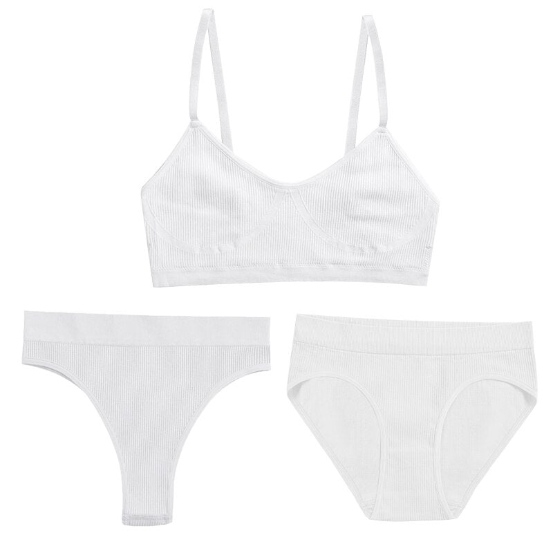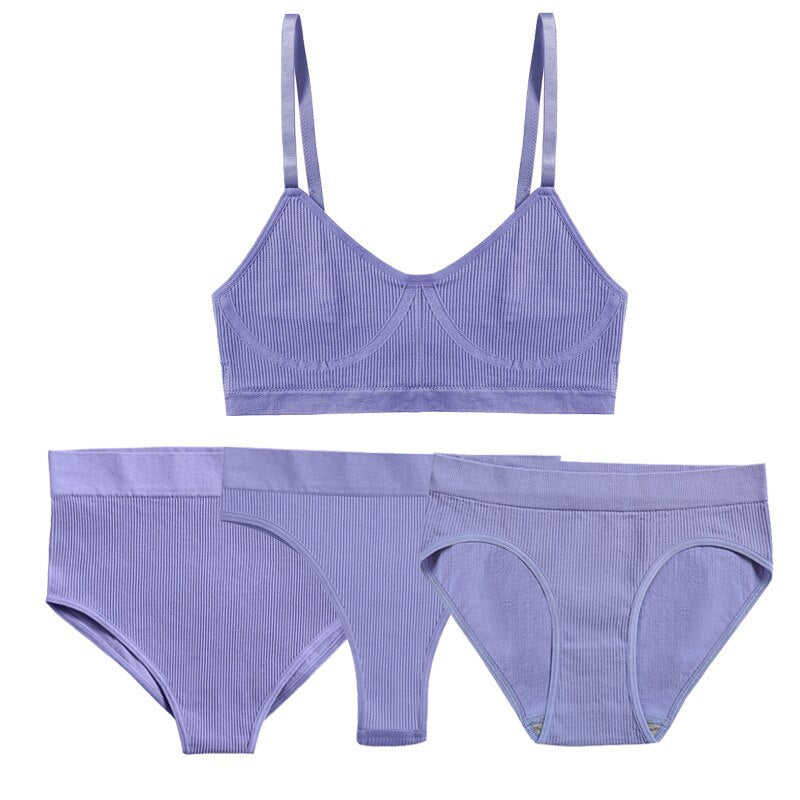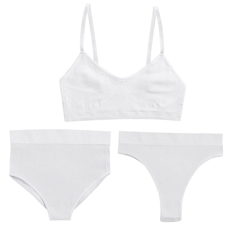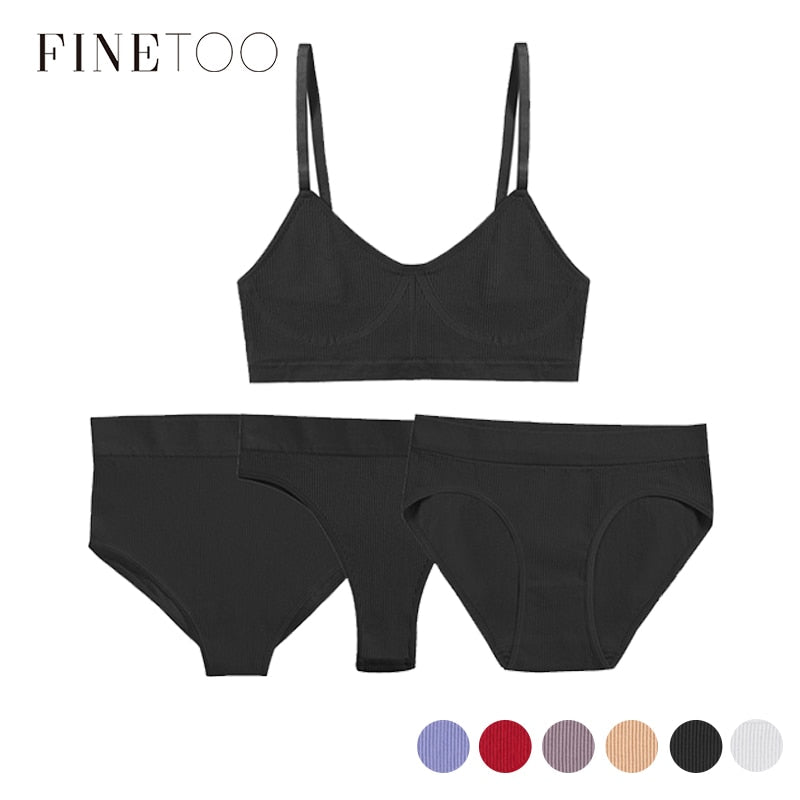 FINETOO 1 Top+3 Panties Set Women Seamless Bra G-String Thongs Soft Tops High Waist Shaper Underwear Female Lingerie Active Bra