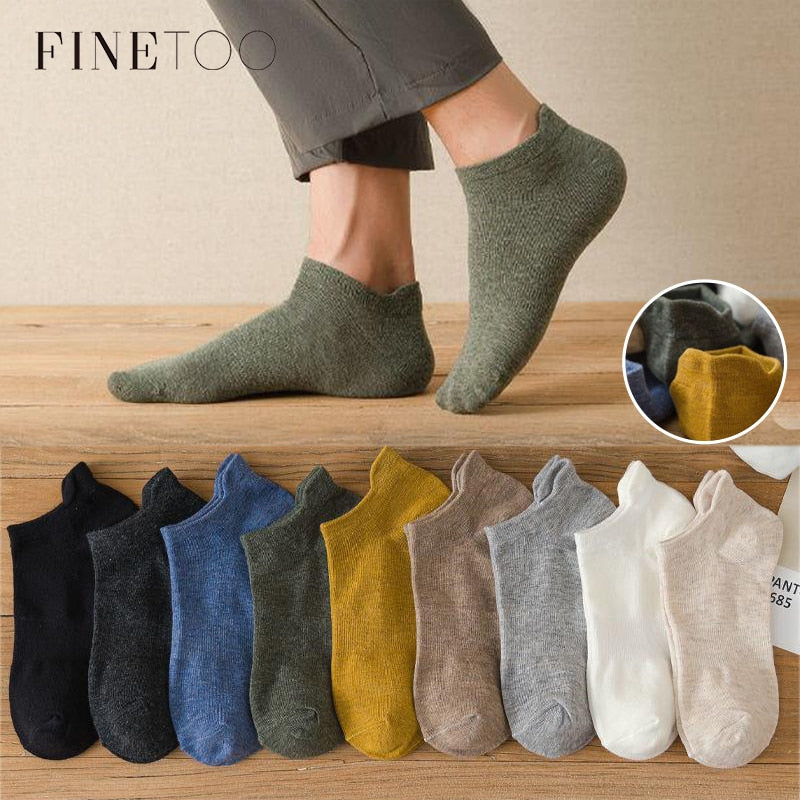 FINETOO 10pieces=5pair/lot Summer Cotton Man Short Ankle Socks Fashion Breathable Man Boat Socks Comfortable Casual Socks 38-44