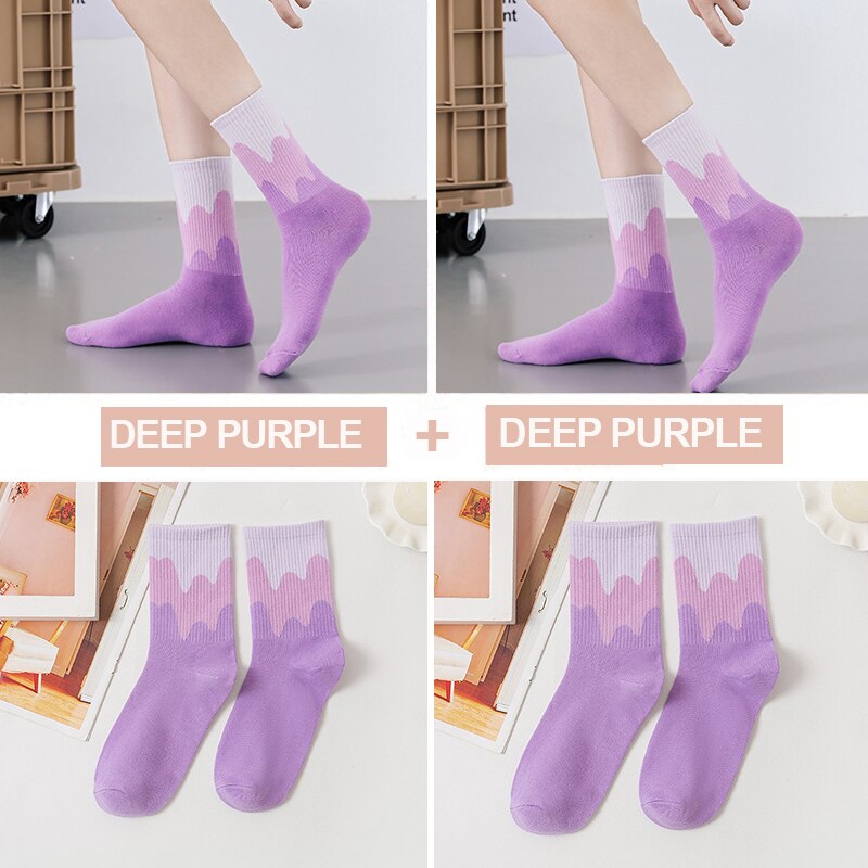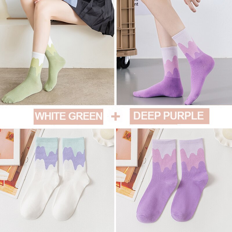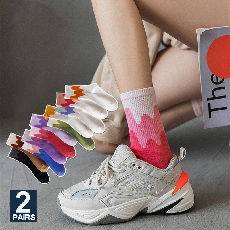 FINETOO 2Pairs/lot Women Midi Tube Socks Female Autumn Winter Candy Colors Korean Japanese Stitching Cotton Girls Graffiti Sock