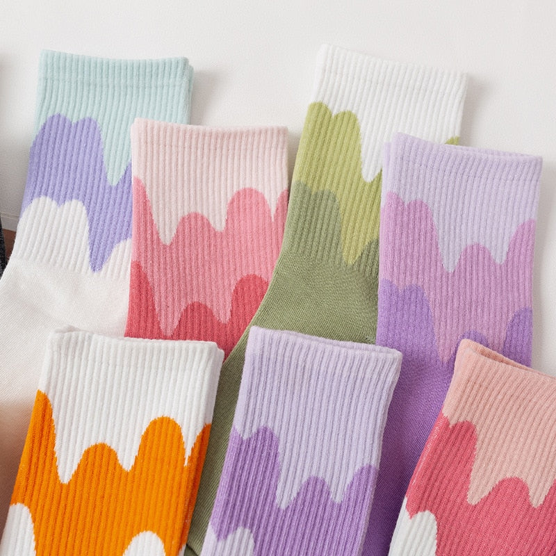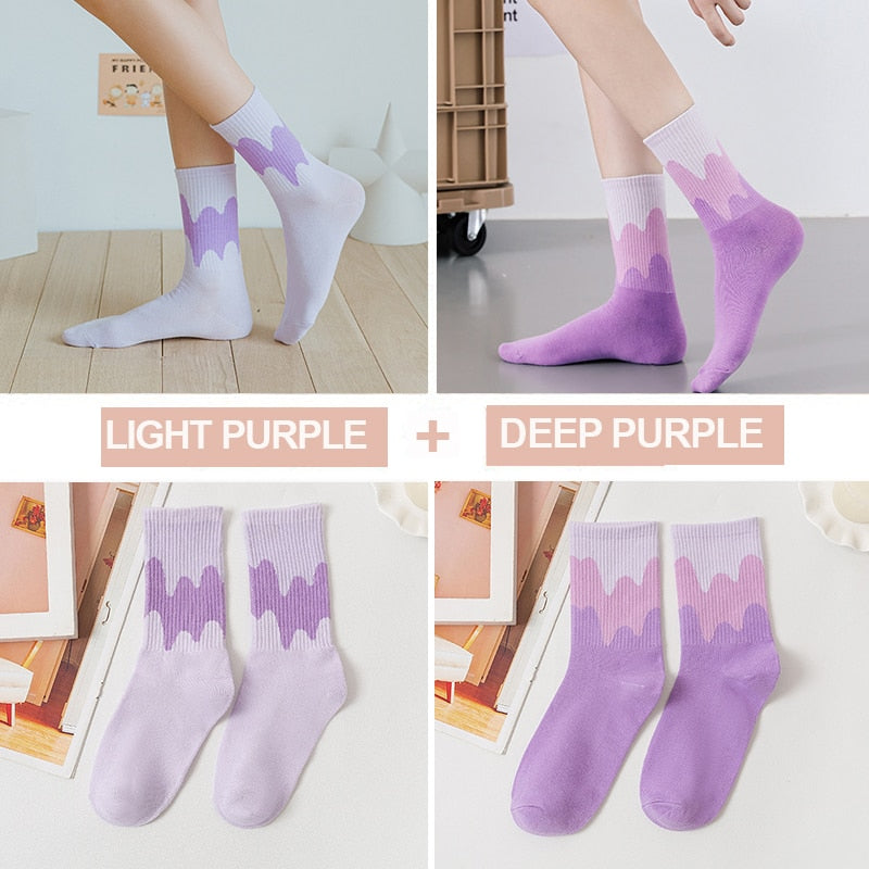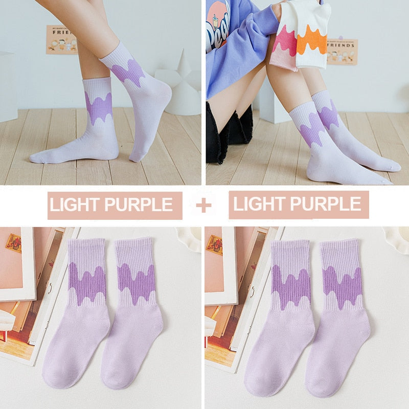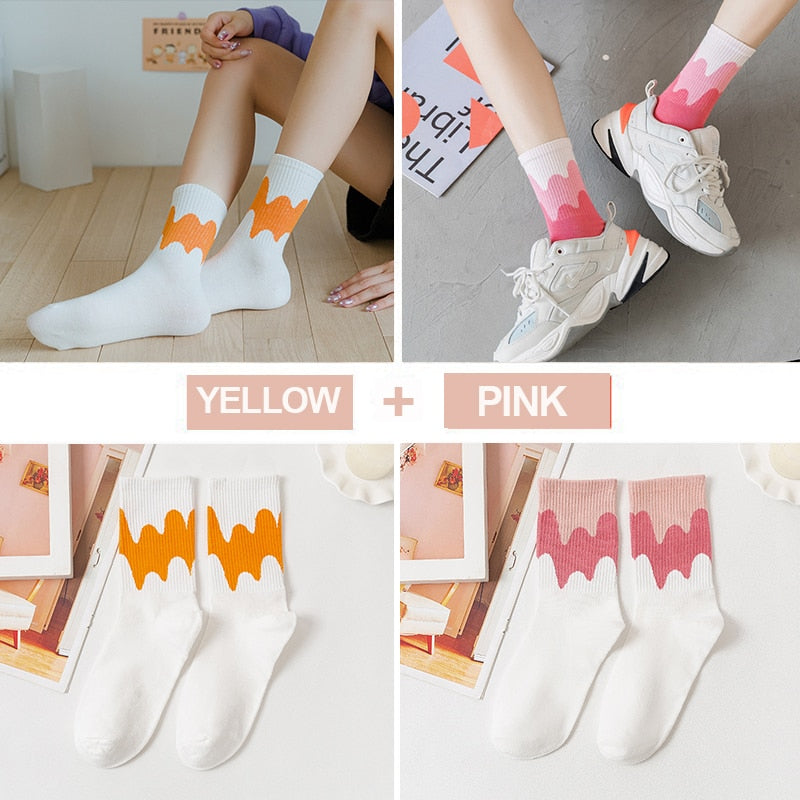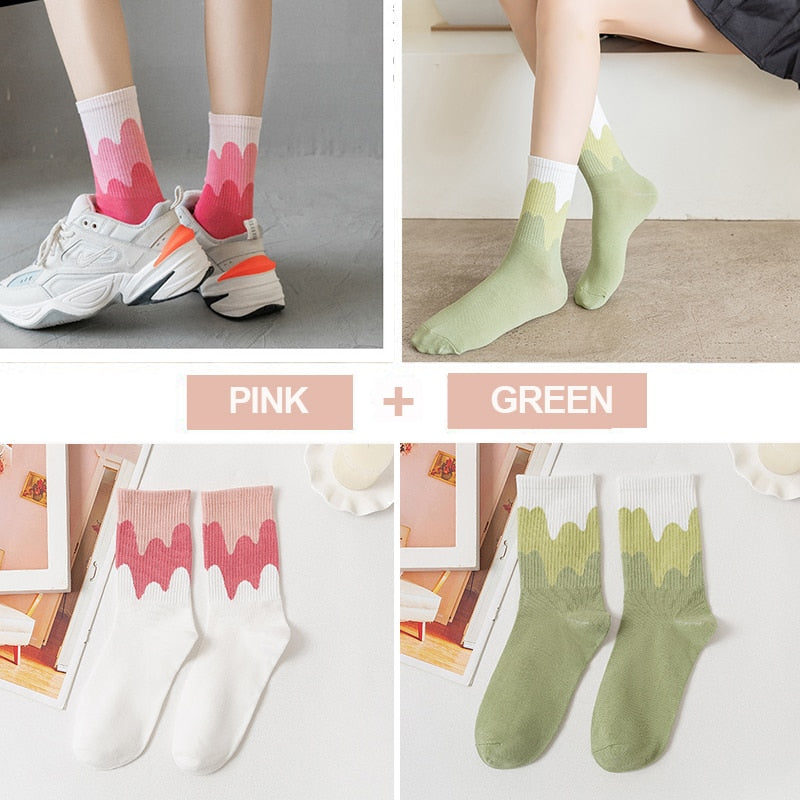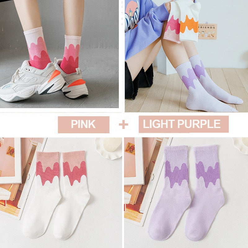 FINETOO 2Pairs/lot Women Midi Tube Socks Female Autumn Winter Candy Colors Korean Japanese Stitching Cotton Girls Graffiti Sock