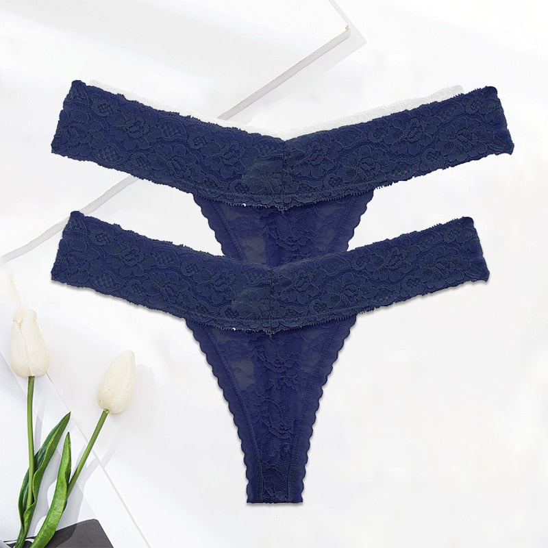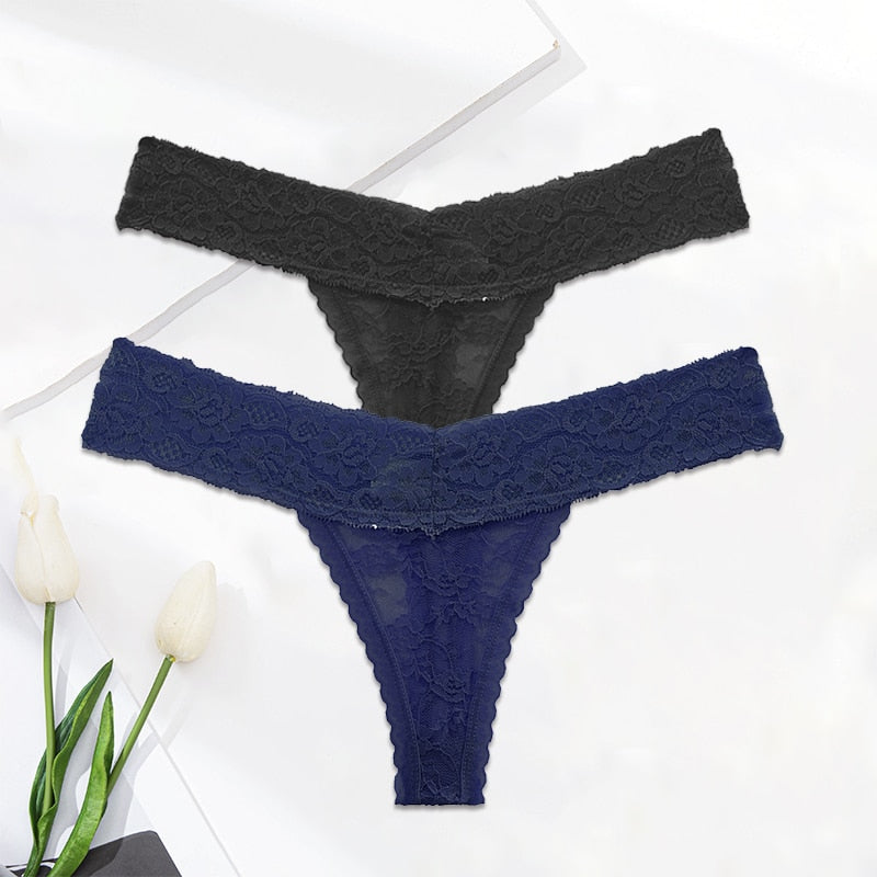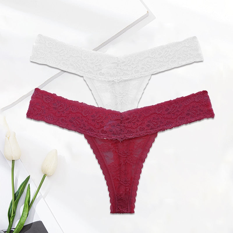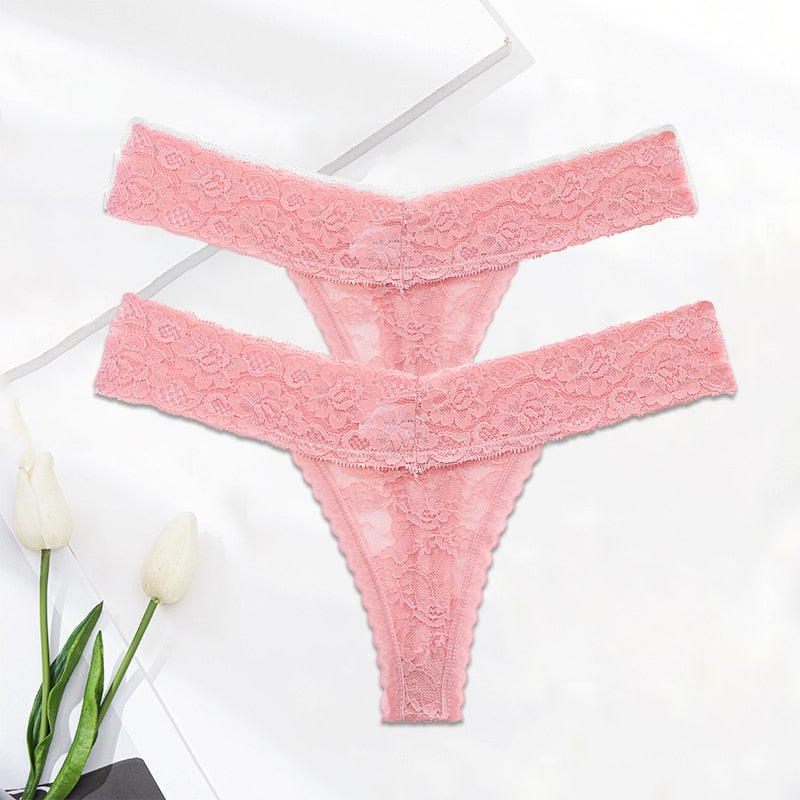 FINETOO 2PCS/Set M-XL Lace G-string Thong Panties for Woman Sexy Floral Underwear Transparent Women's Underpants Female Lingerie