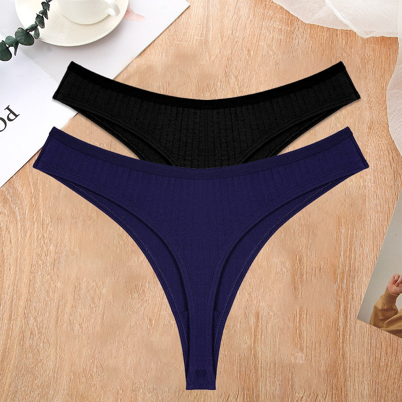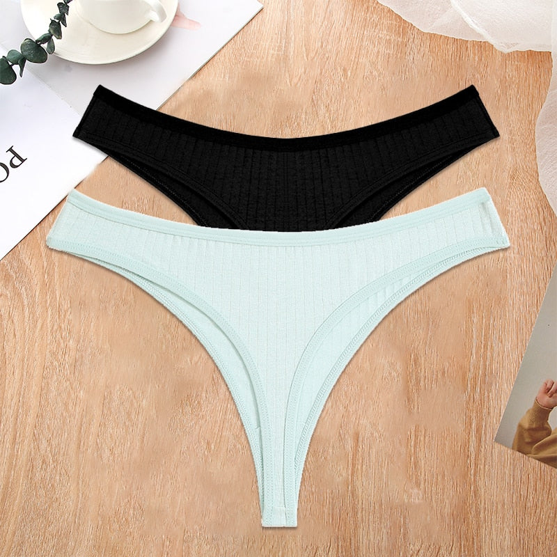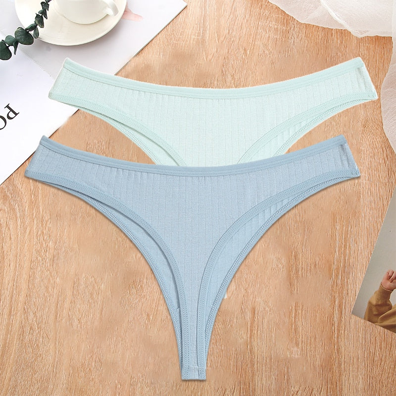 FINETOO 2PCS/Set S-XL G-string Cotton Women Lingerie Panties Thong Female Underwear Sexy Pantys Underpant Girl Intimates Thongs