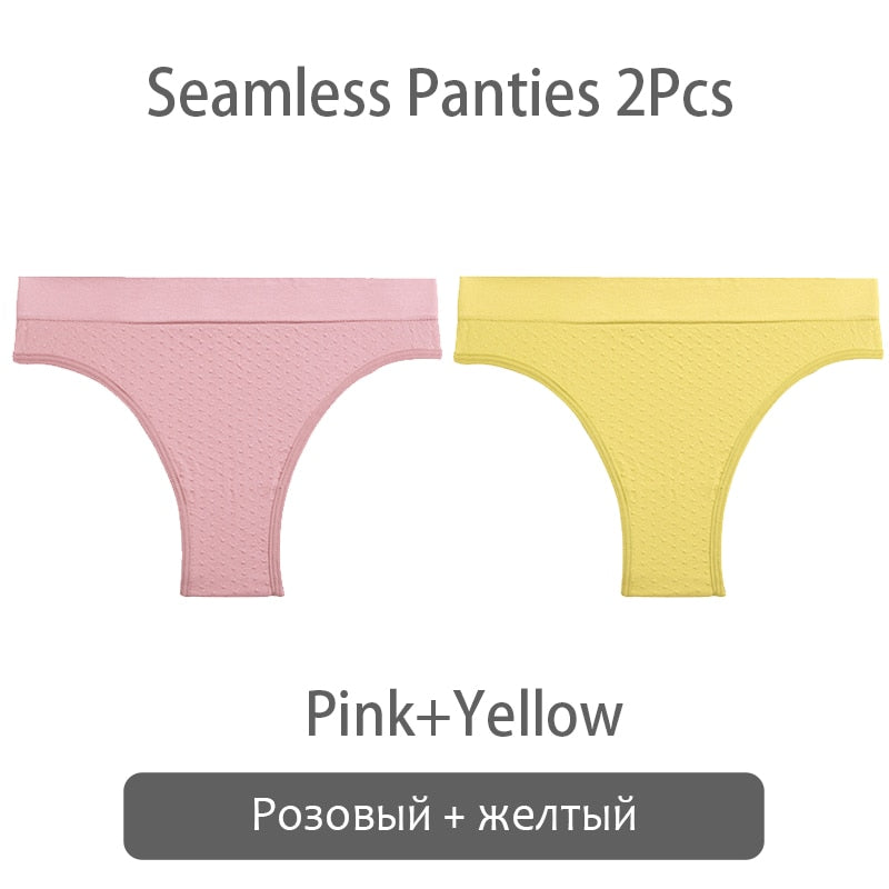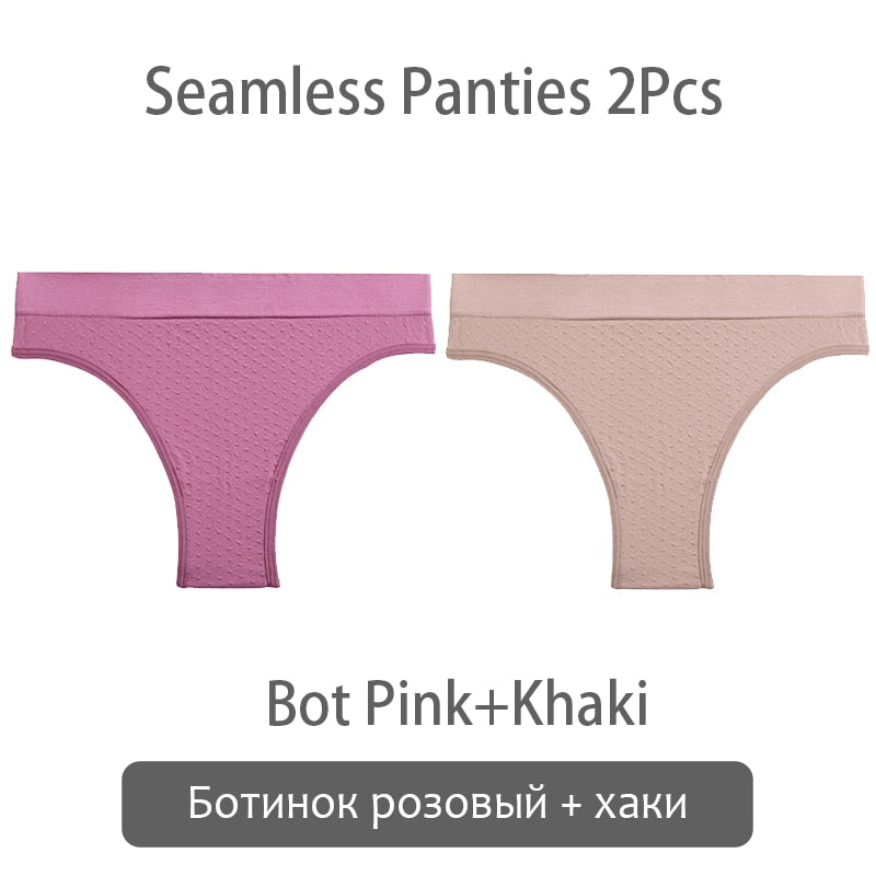 FINETOO 2Pcs/set Seamless Brazilian Panties S-2XL Plus Size Women T-back Underpants Ladies Soft Thongs Underwear Female Lingerie