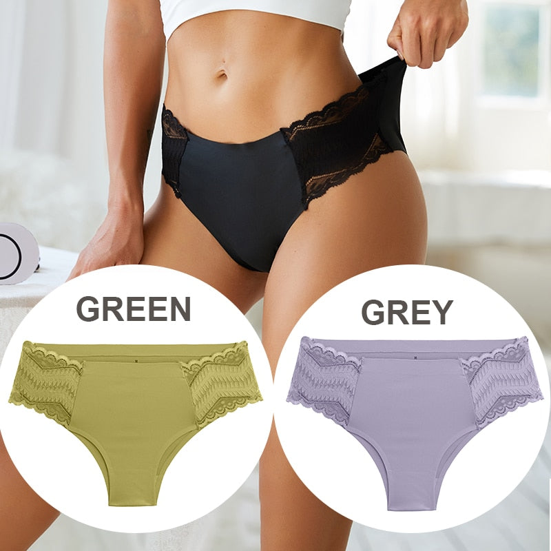 FINETOO 2PCS/Set Seamless Women Pantys Girls Lingerie High Waisted Lace Woman Briefs 8 Solid Colors S-XL Sexy Underpants Women