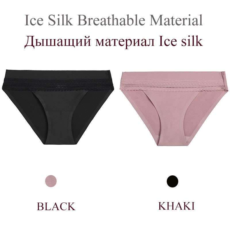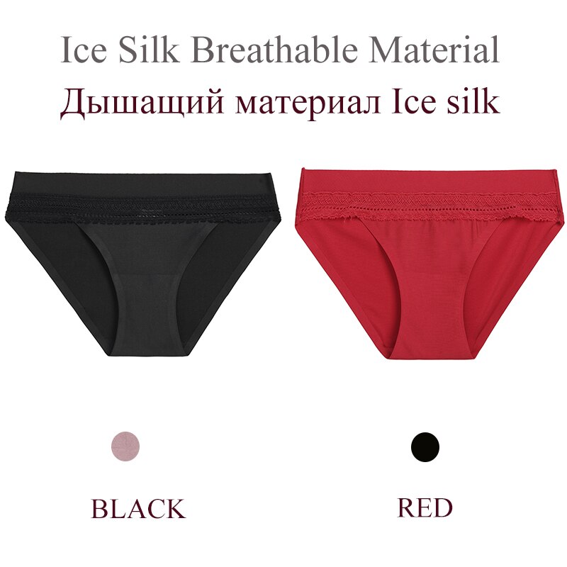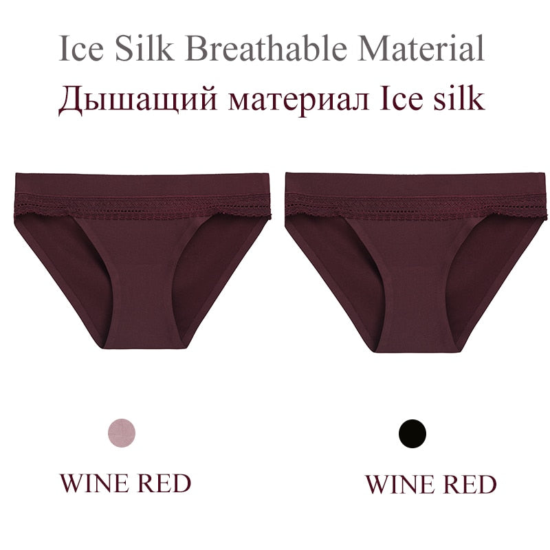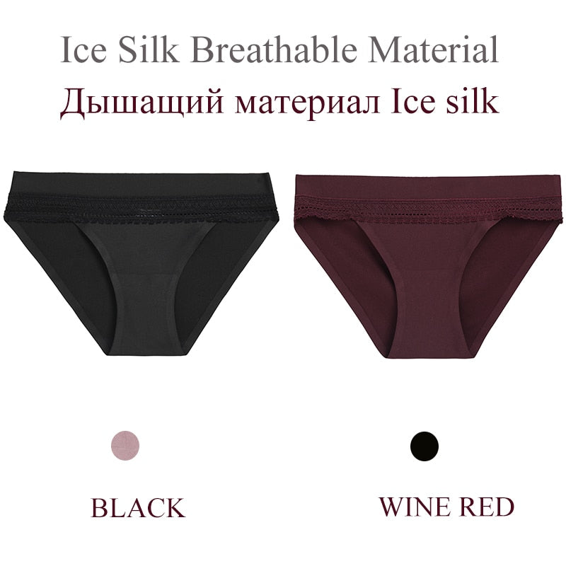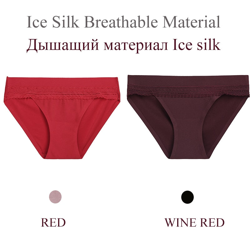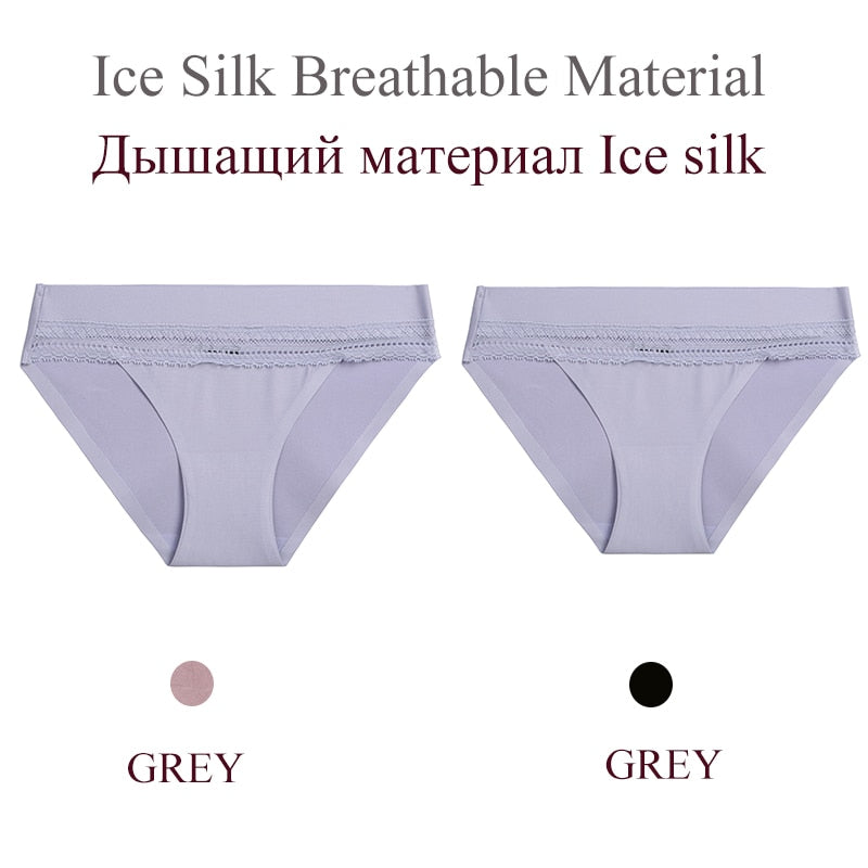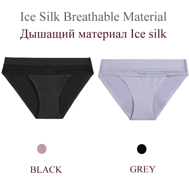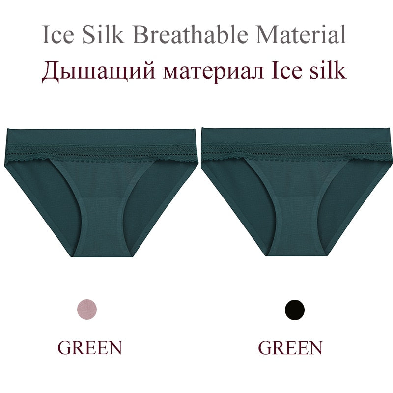 FINETOO 2PCS/Set Woman Lace Sexy Panties Ice Silk Women Underwear Seamless Low-Rise Lingerie Female Breathable Girls Panty 2021