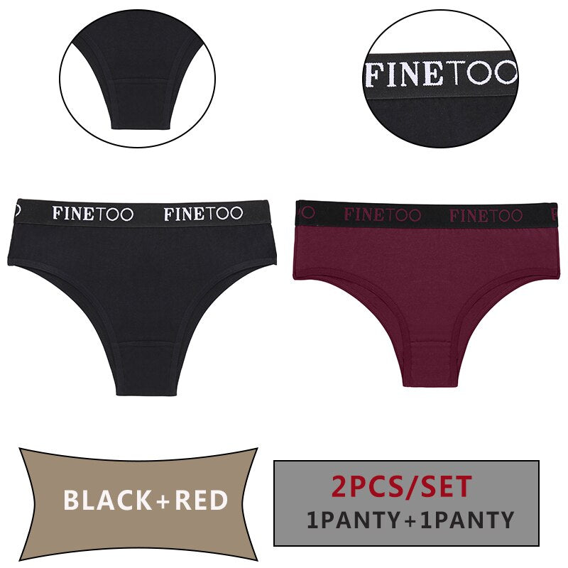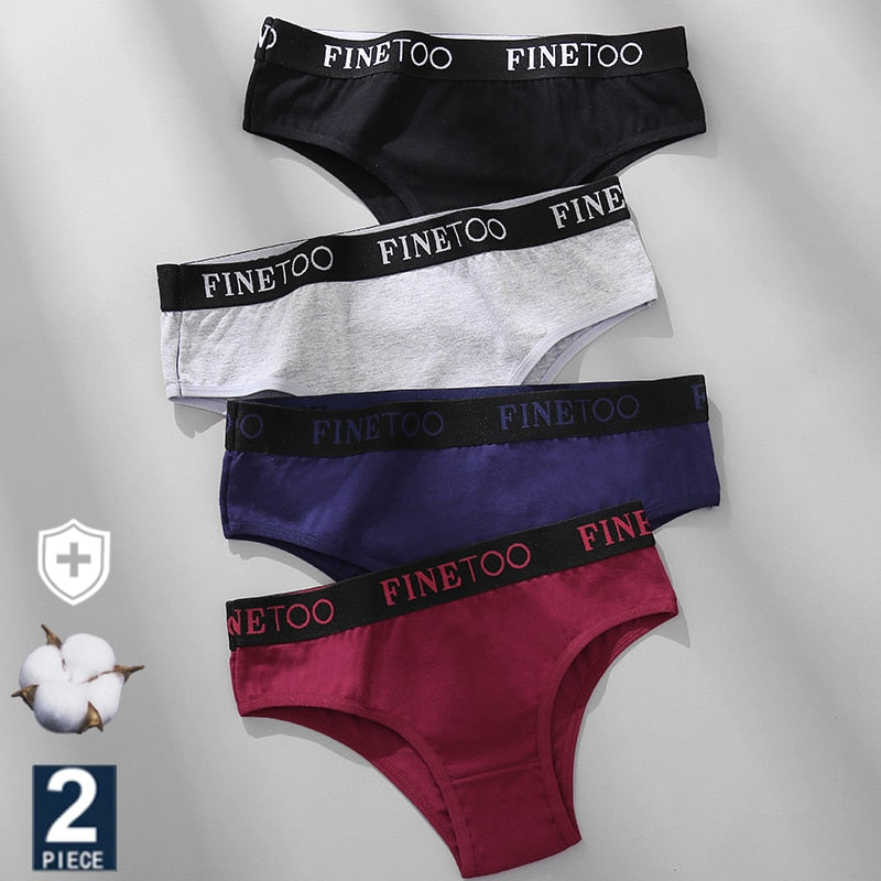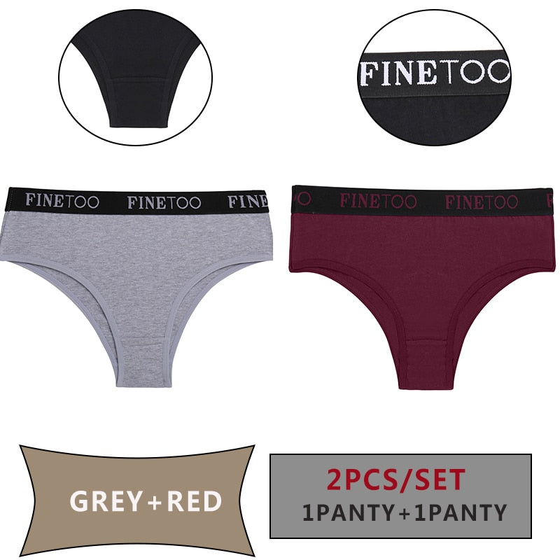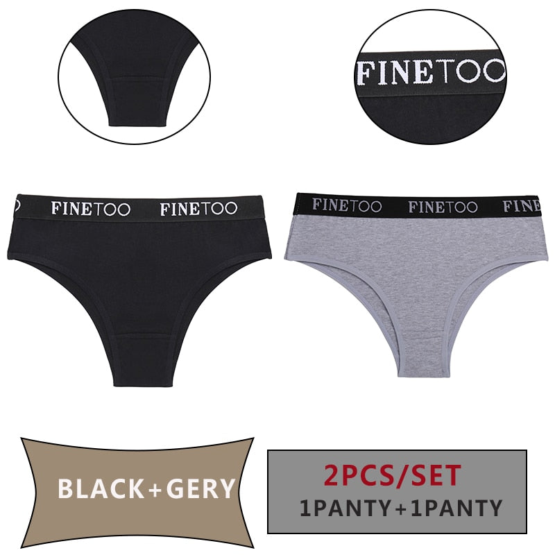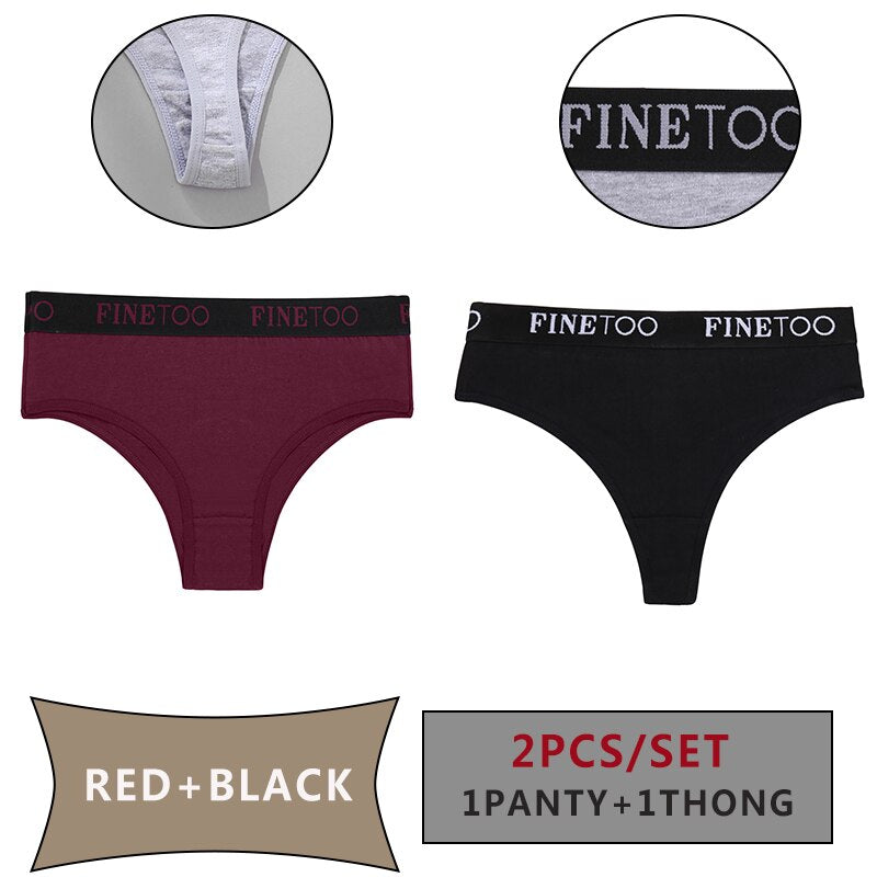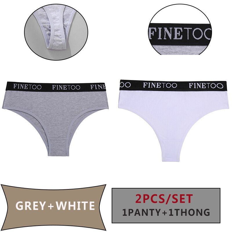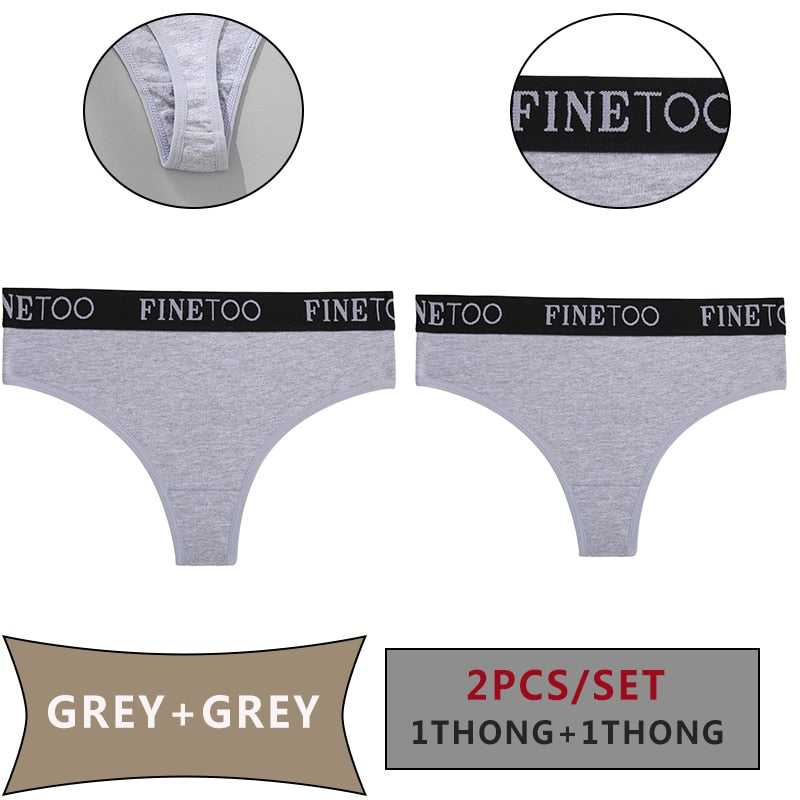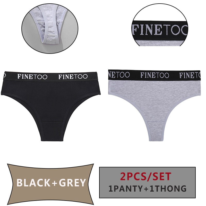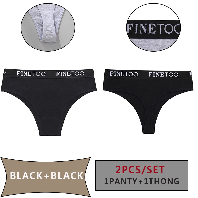 FINETOO 2PCS/Set Women Cotton Panties Sexy Letter Underwear Panty Thong Low Waisted 1Panty+1G-string Brief Tanga Lingerie Femme