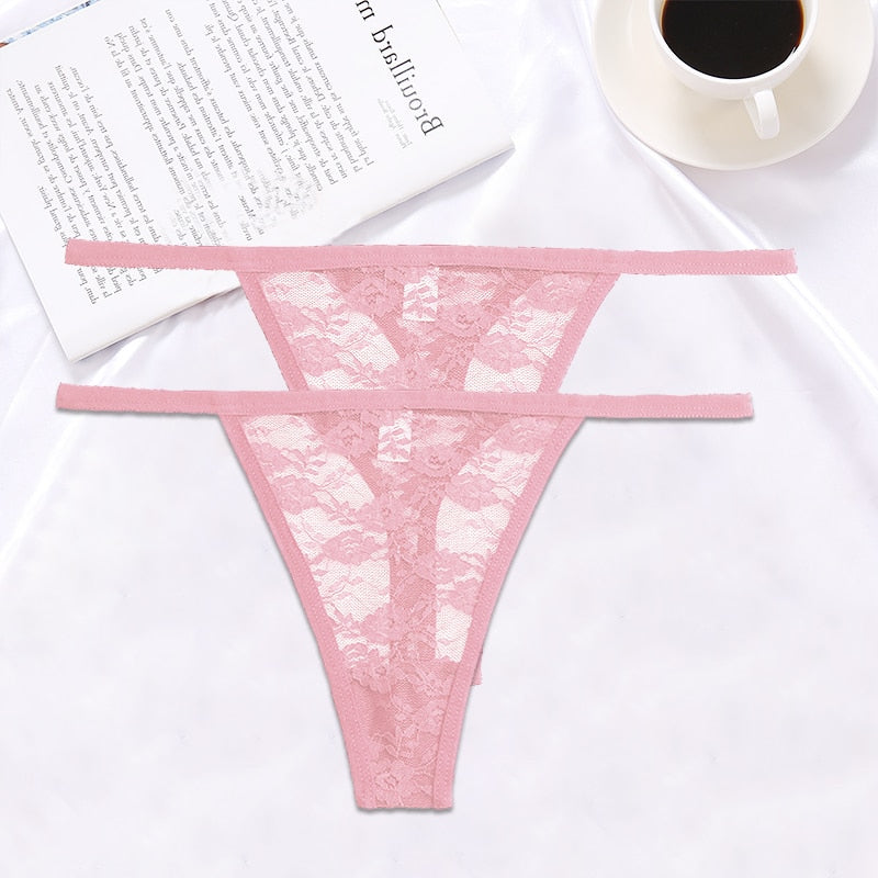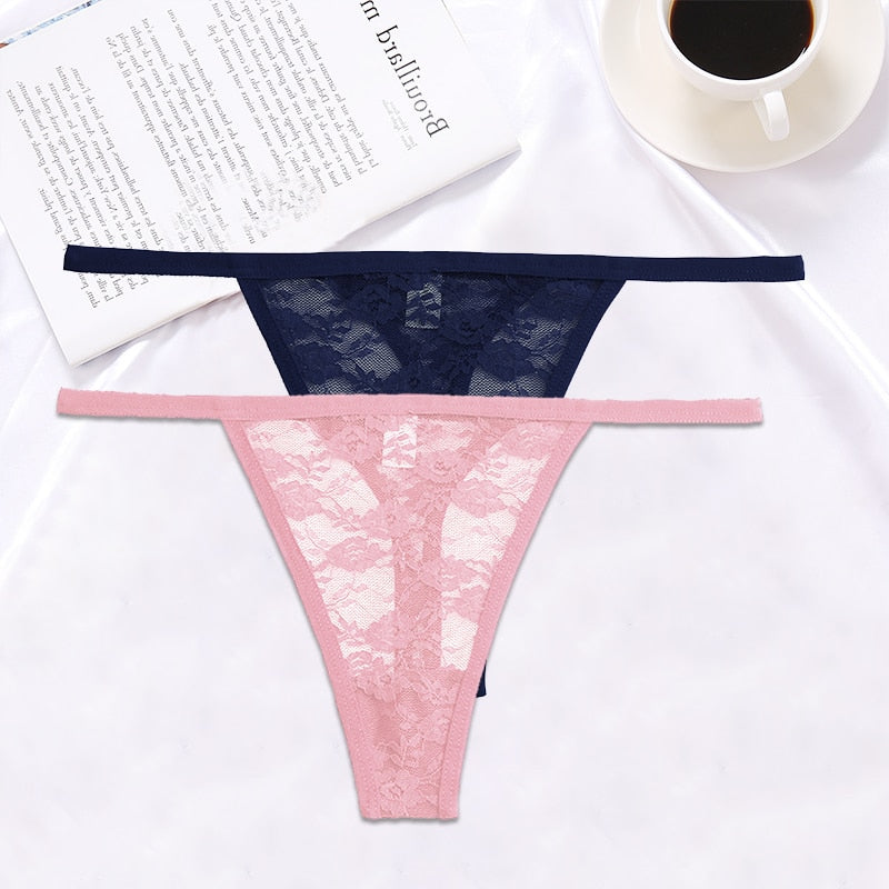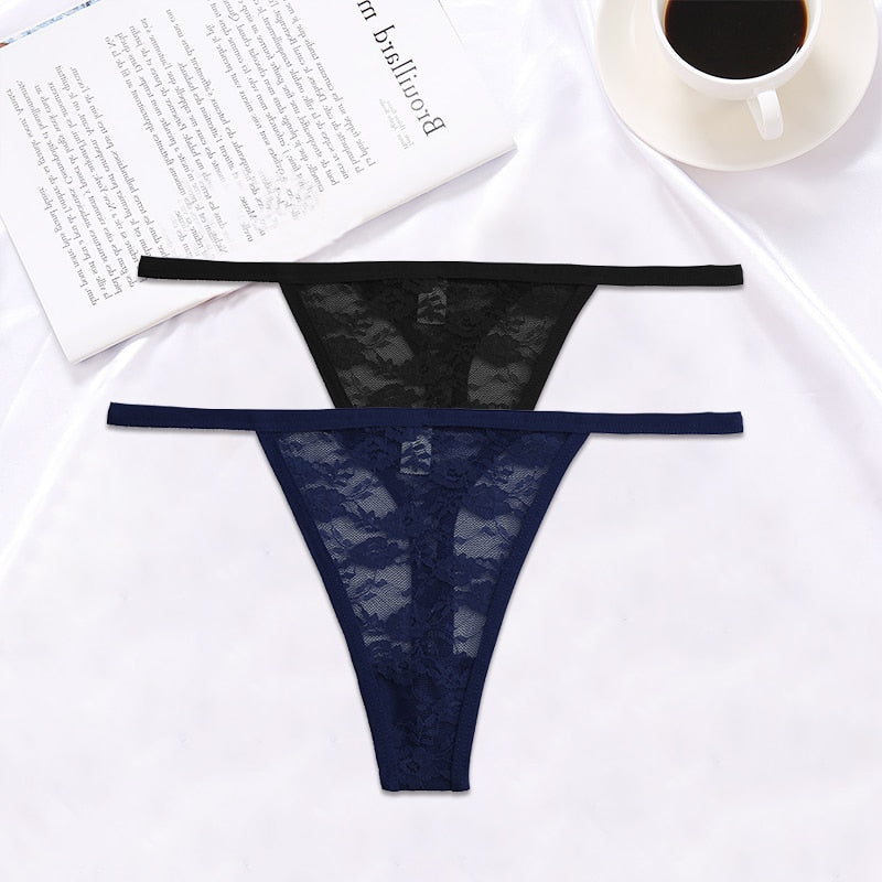 FINETOO 2PCS/Set Women Lace G-string Panties Thongs Sexy Underwear Pantys Low-Waist Femme Underpants Mesh Transparent  Lingerie