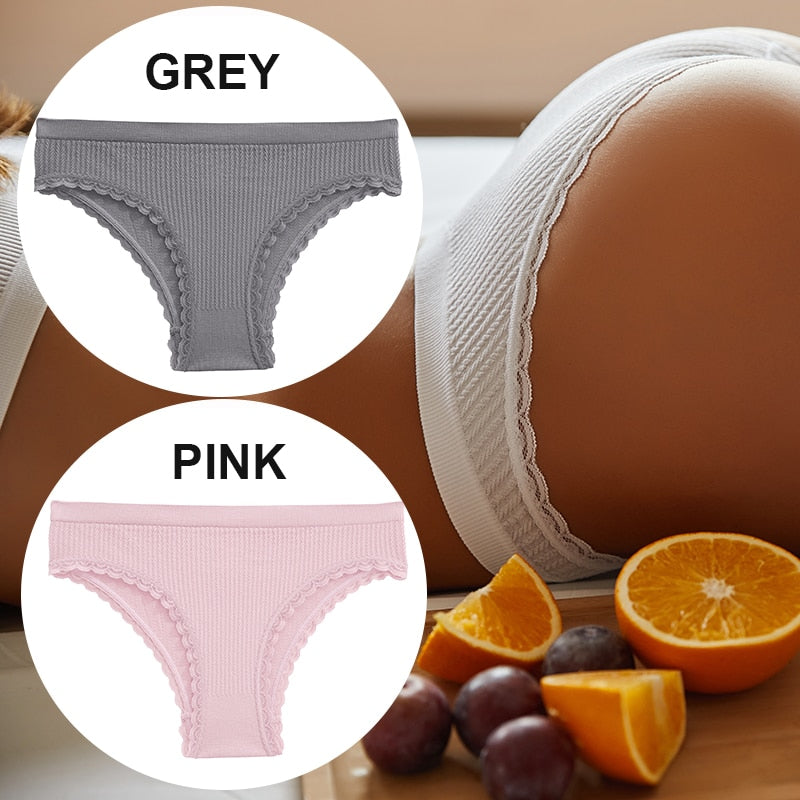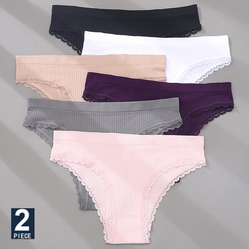 FINETOO 2PCS/Set Women Lace Seamless Sexy Panties 6 Solid Color Brazilian Panty Girl Briefs Lingerie Underpant M-2XL Underwear