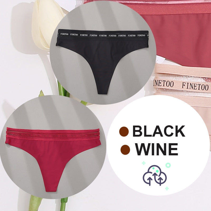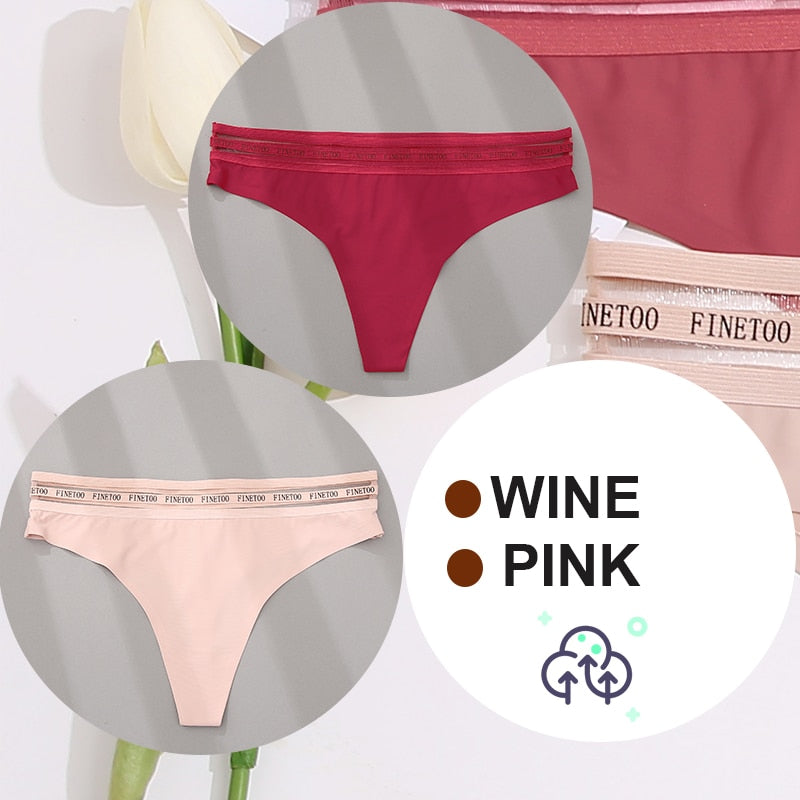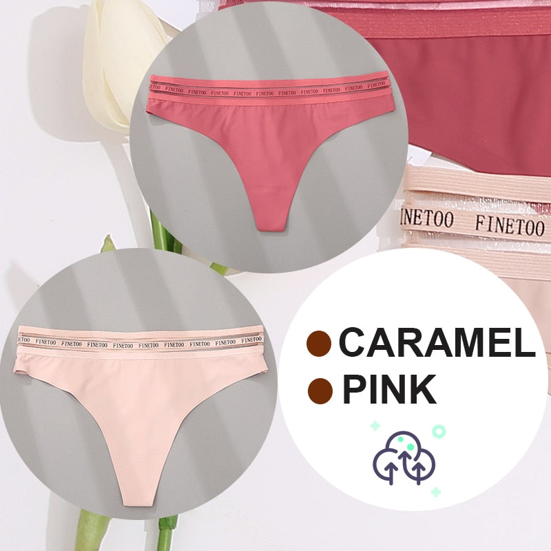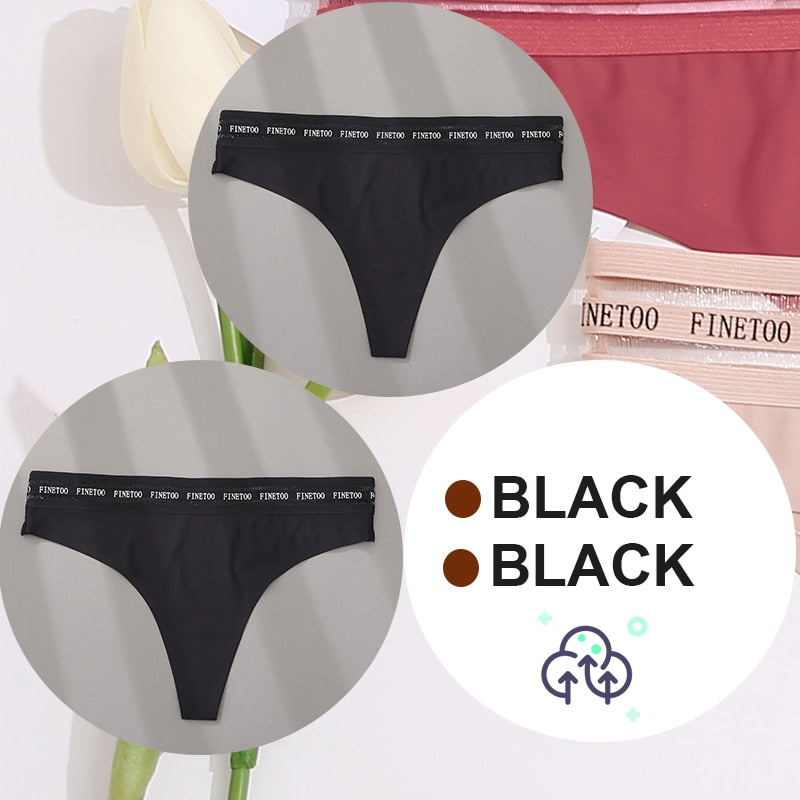 FINETOO 2PCS/Set Women Seamless G-string Panties M-XL Letter Soft Panties 7 Colors Patchwork Woman Underwear Thongs Lingerie