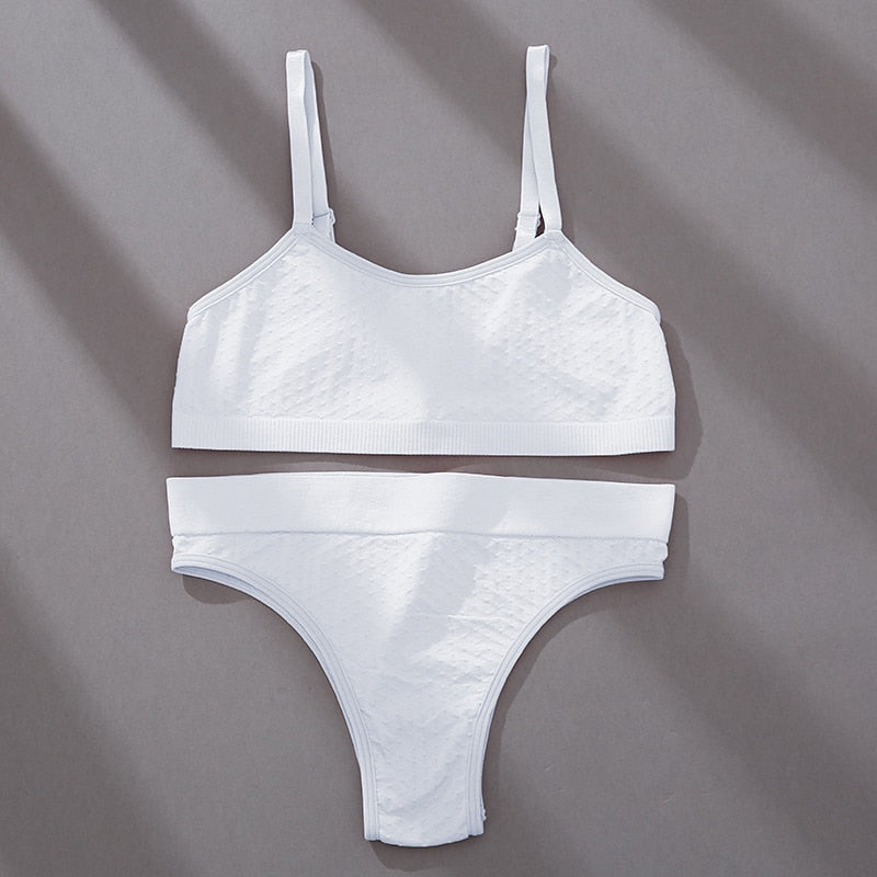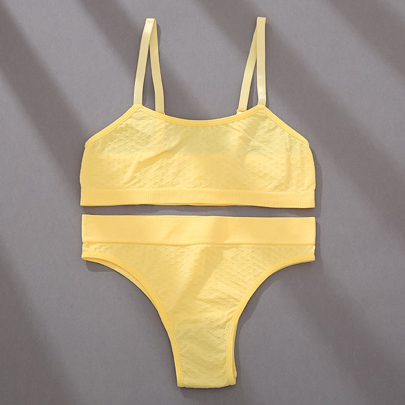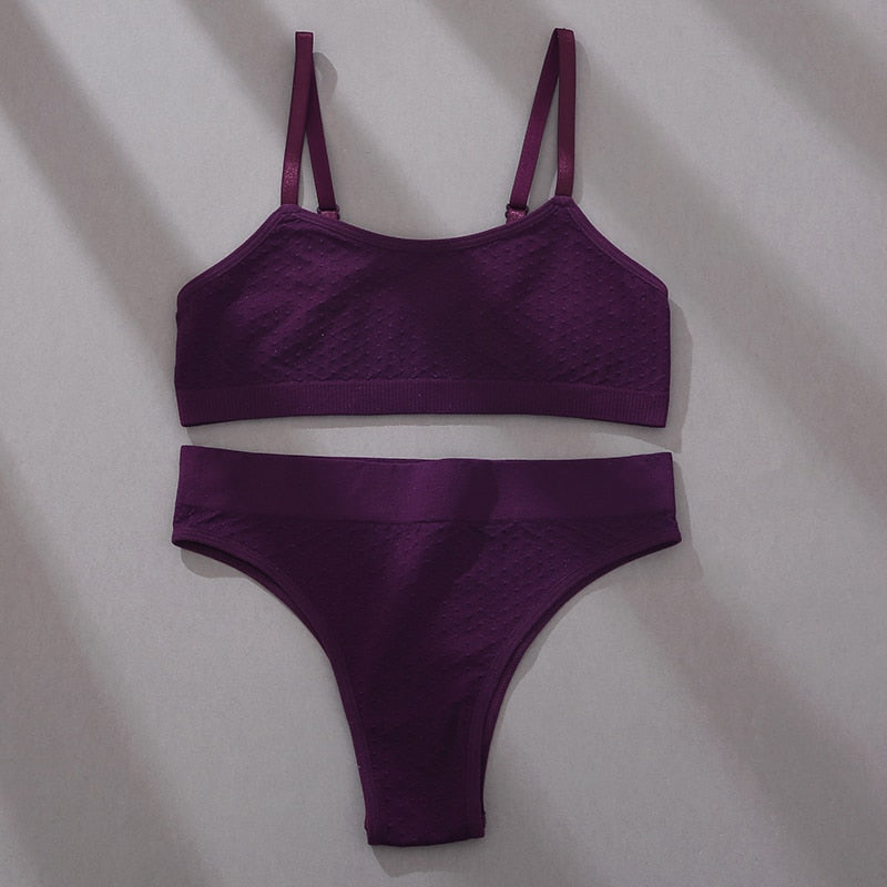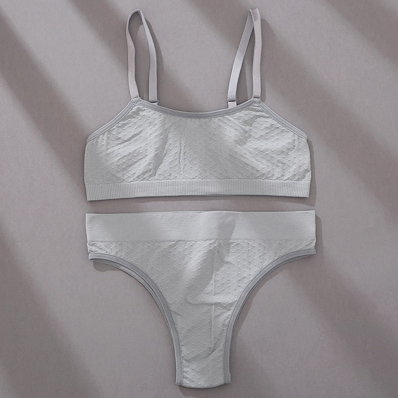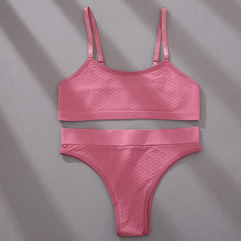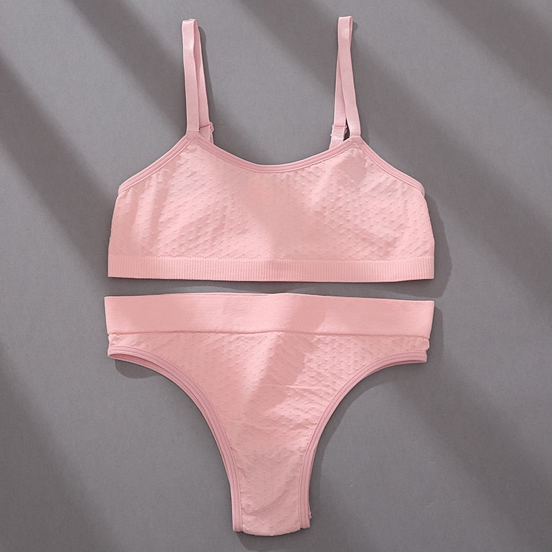 FINETOO 3D Dots Women Seamless Bra Set S-2XL Plus Size Underwear Suit Female Jacquard Bras Set Soft Tops and Brazilian Panties
