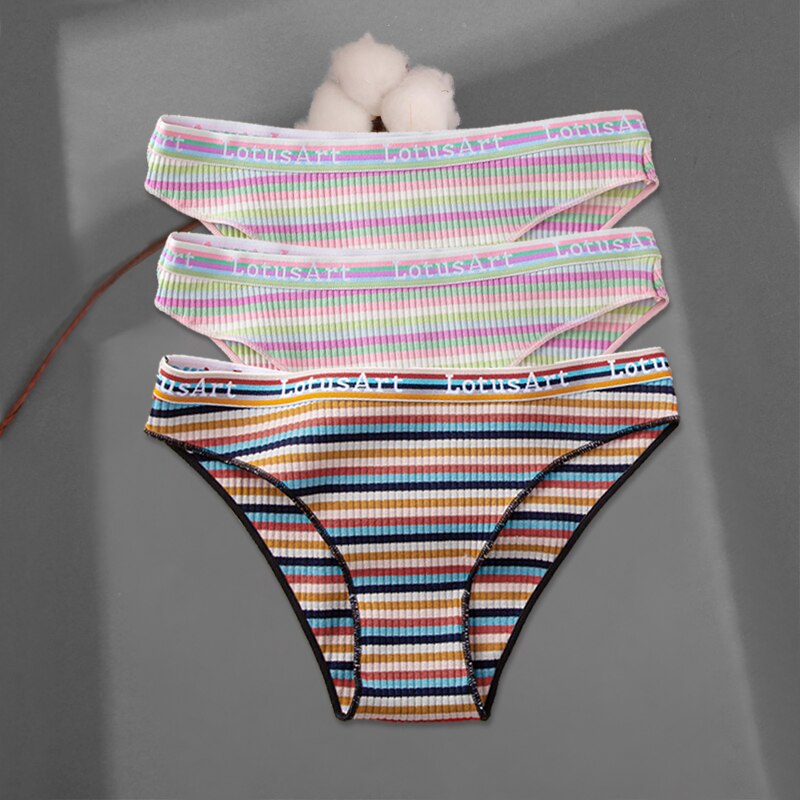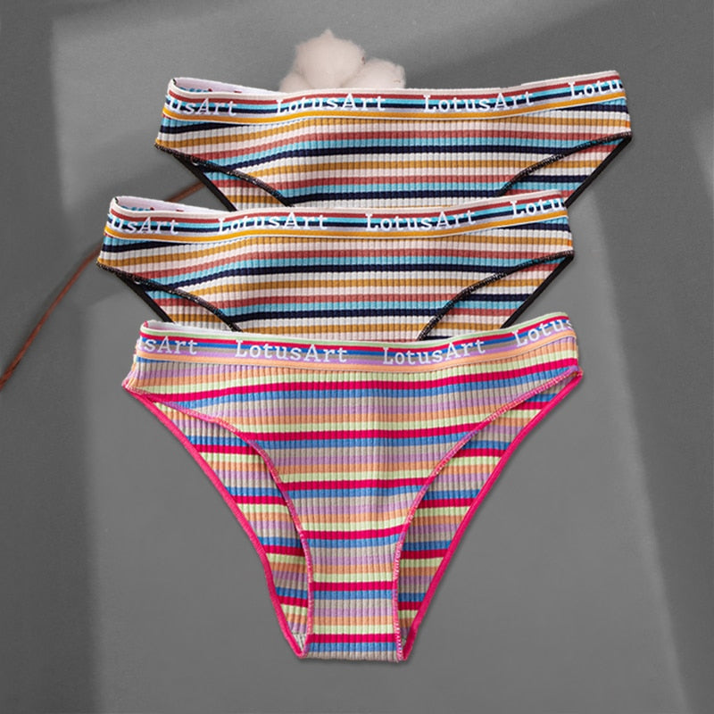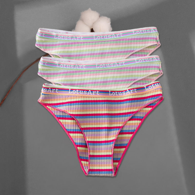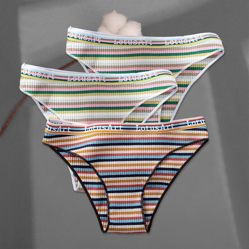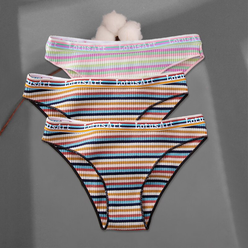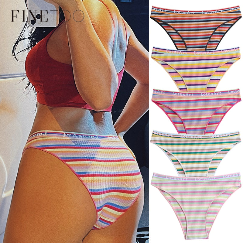 FINETOO 3Pcs/set Colorful Stripes Panties Women's Cotton Briefs M-XL Low-Rise Rainbow Underwear Ladies Underpants Girls Panties