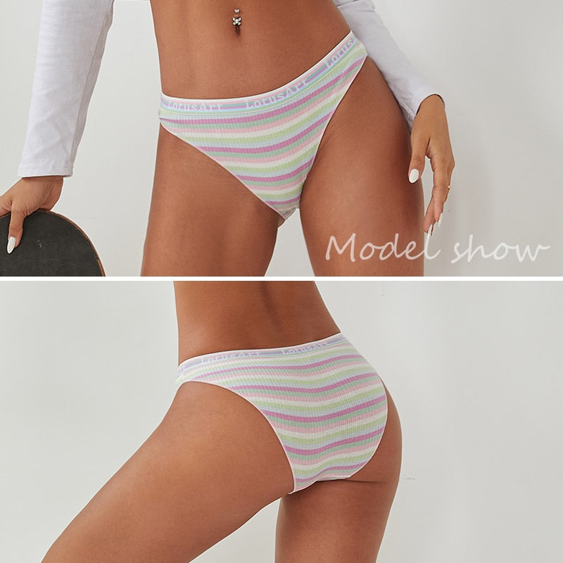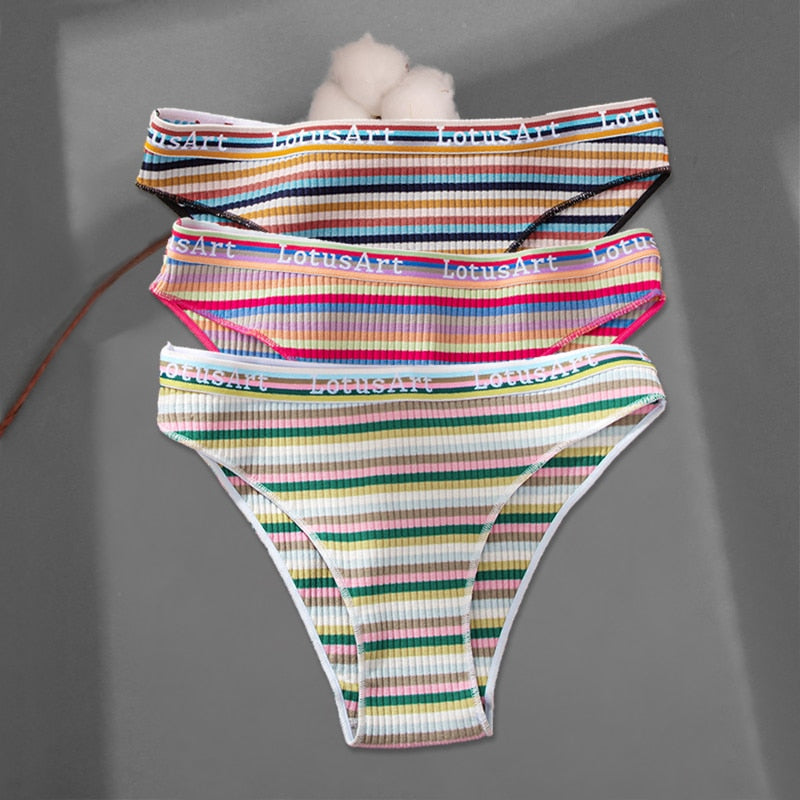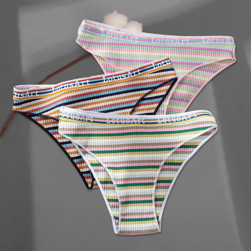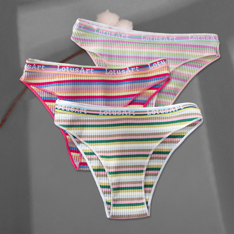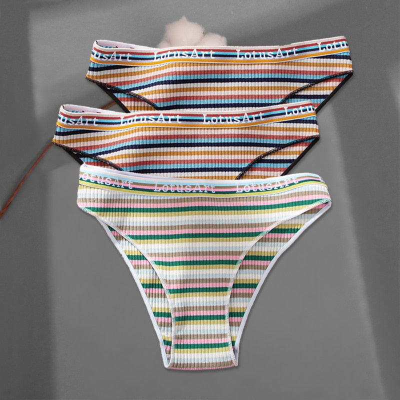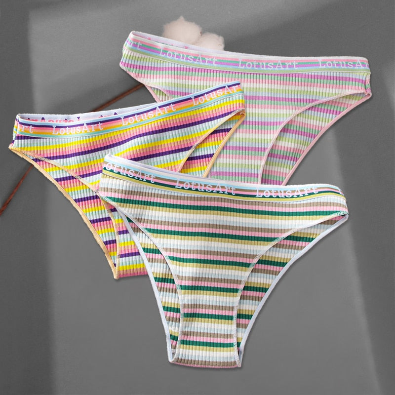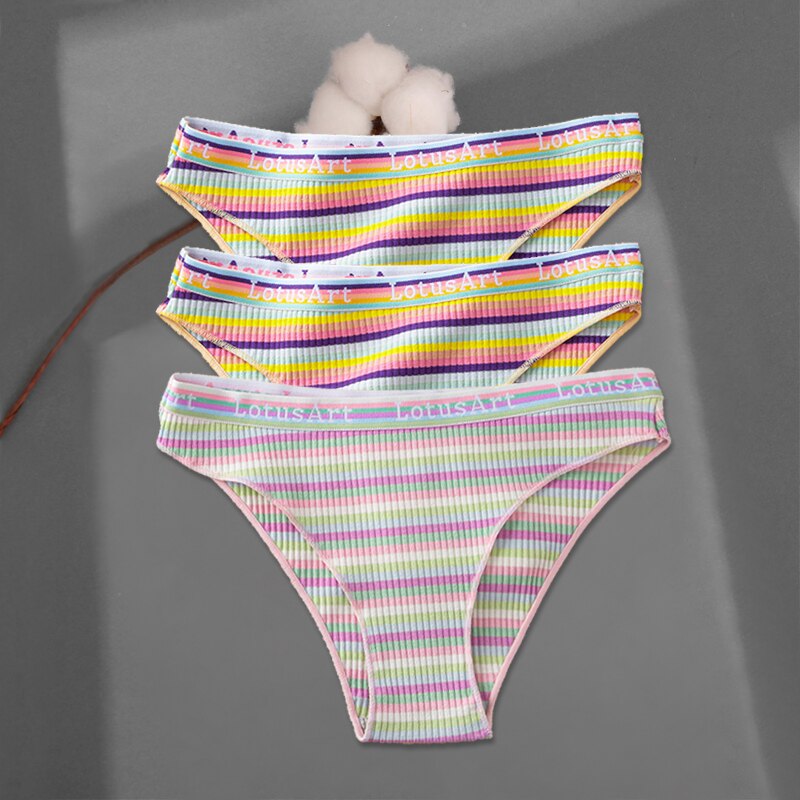 FINETOO 3Pcs/set Colorful Stripes Panties Women's Cotton Briefs M-XL Low-Rise Rainbow Underwear Ladies Underpants Girls Panties