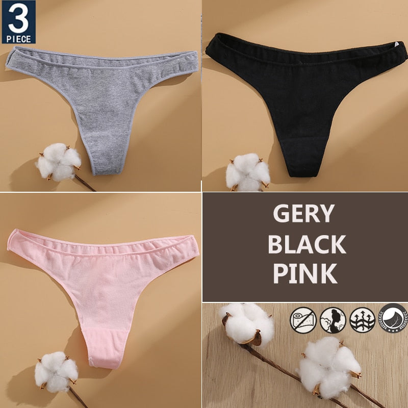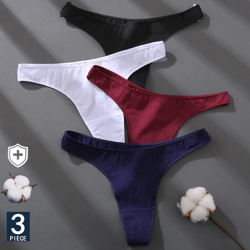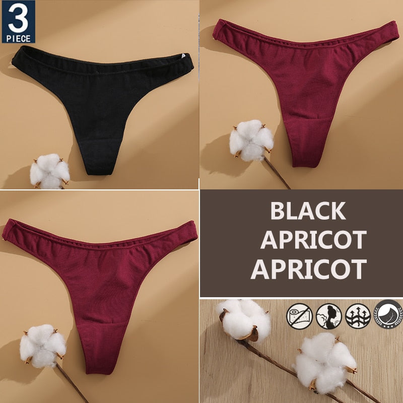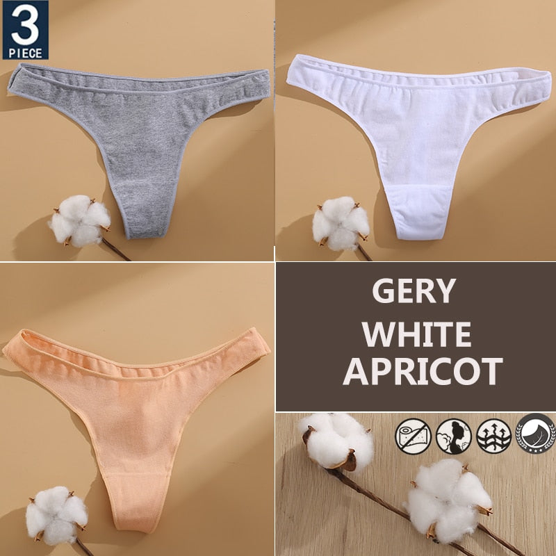 FINETOO 3PCS/Set Cotton Lingerie Women's G-string Underwear 7 Solid Colors Ladies Panties Female Low-Rise Woman's Thong Briefs