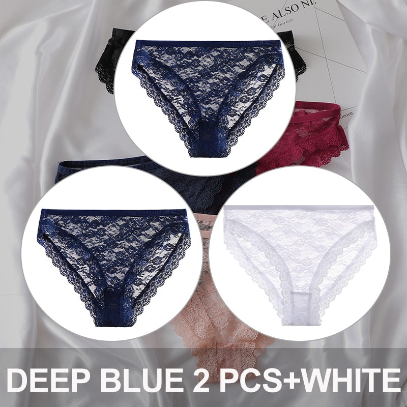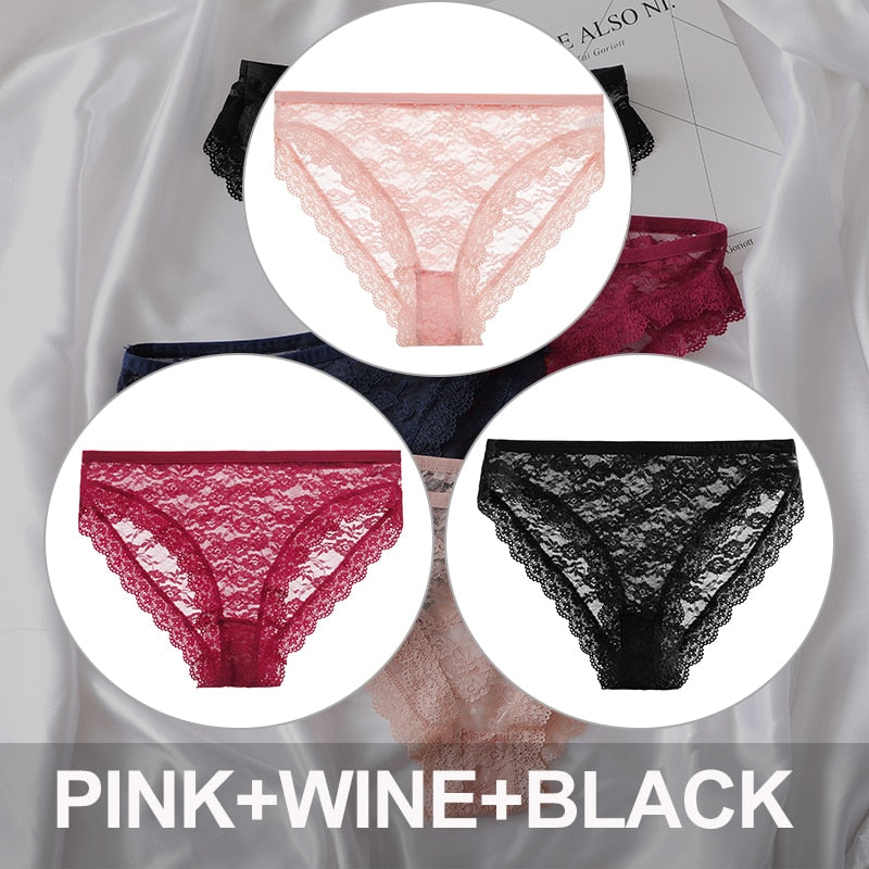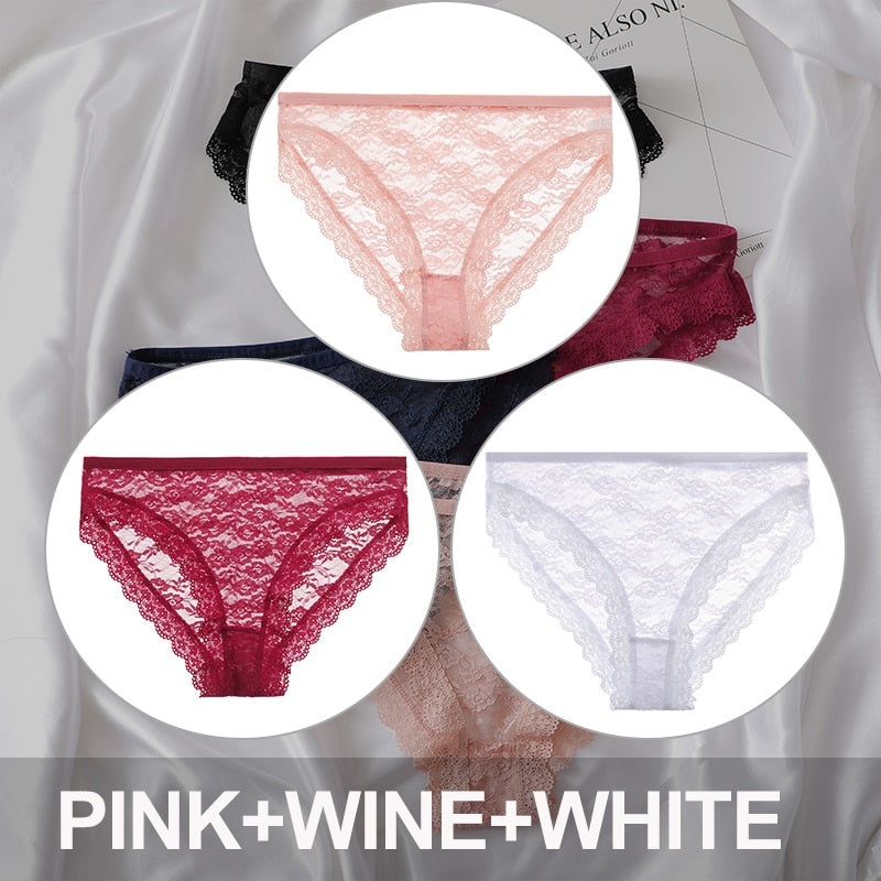 FINETOO 3PCS/Set Floral Lace Sexy Women Lingerie Panties M-2XL Plus Size Underpants Transparent Female Comfortable Briefs Girls