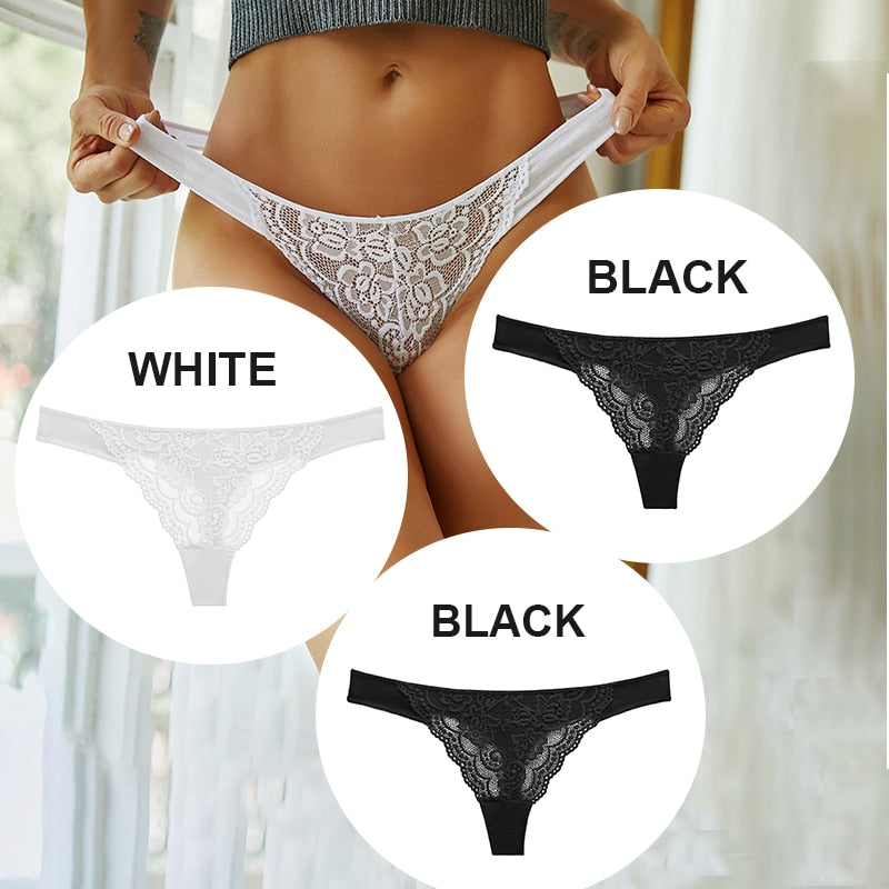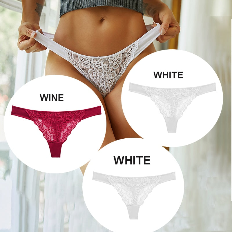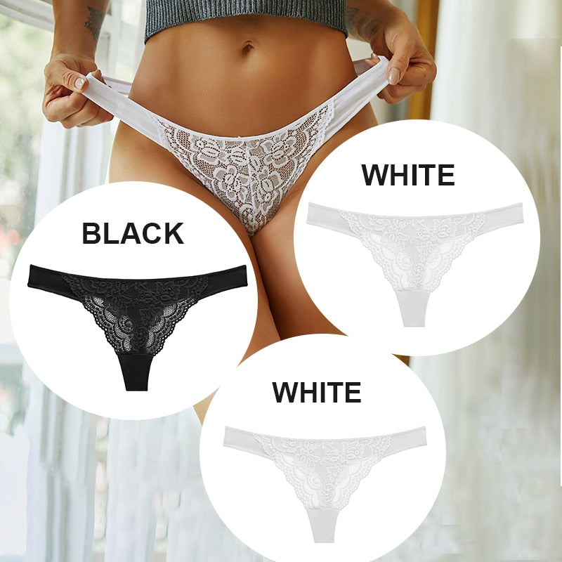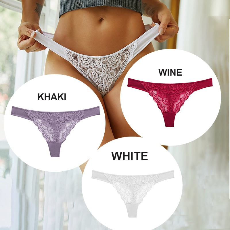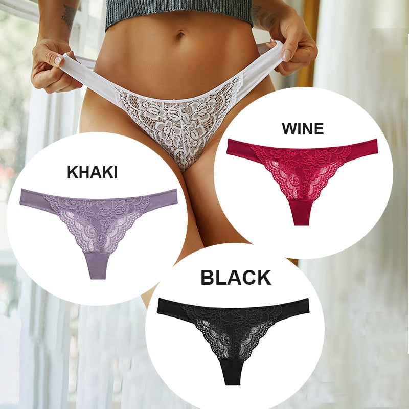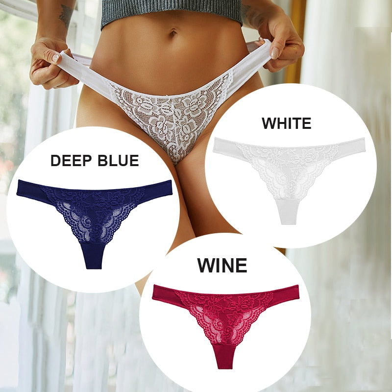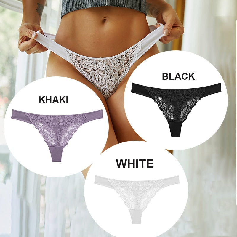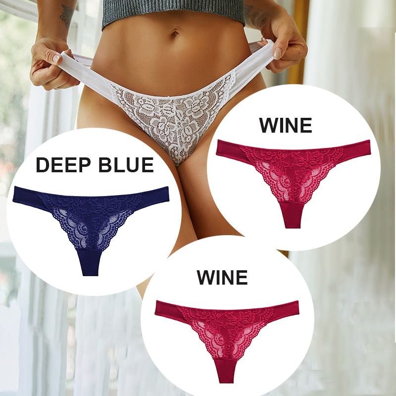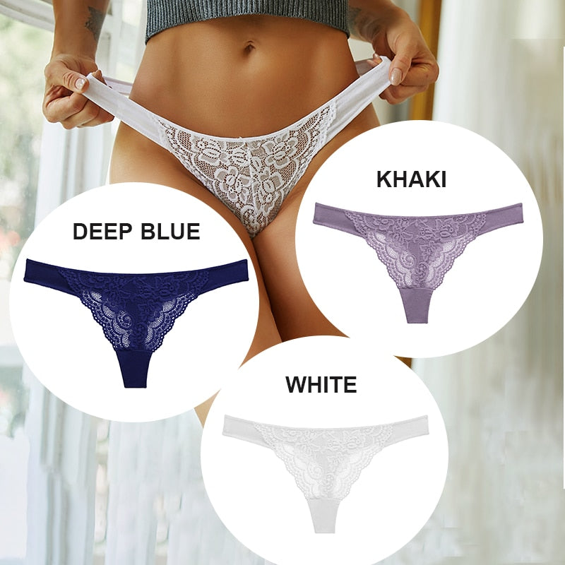 FINETOO 3PCS/Set M-XL Cotton G-string Women Lace Panties Sexy Woman Thong Underwear Lingerie Lace Pantys Femme T-Back Underpants