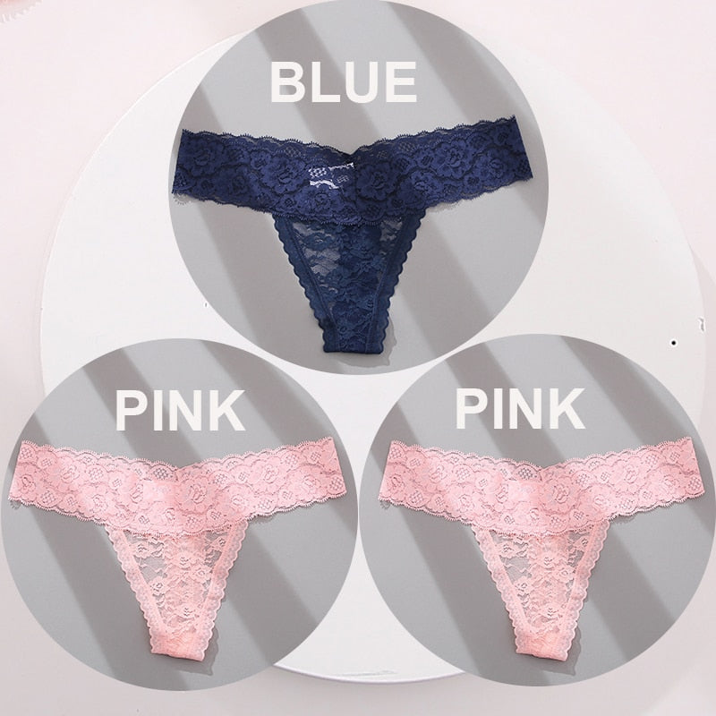 FINETOO 3PCS/Set M-XL G-string Thong Panties for Woman Sexy Lace Floral Underwear Transparent Women's Underpants Female Lingerie