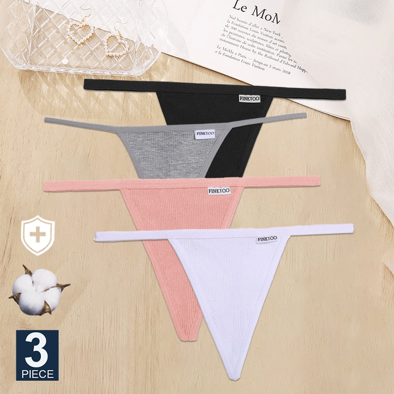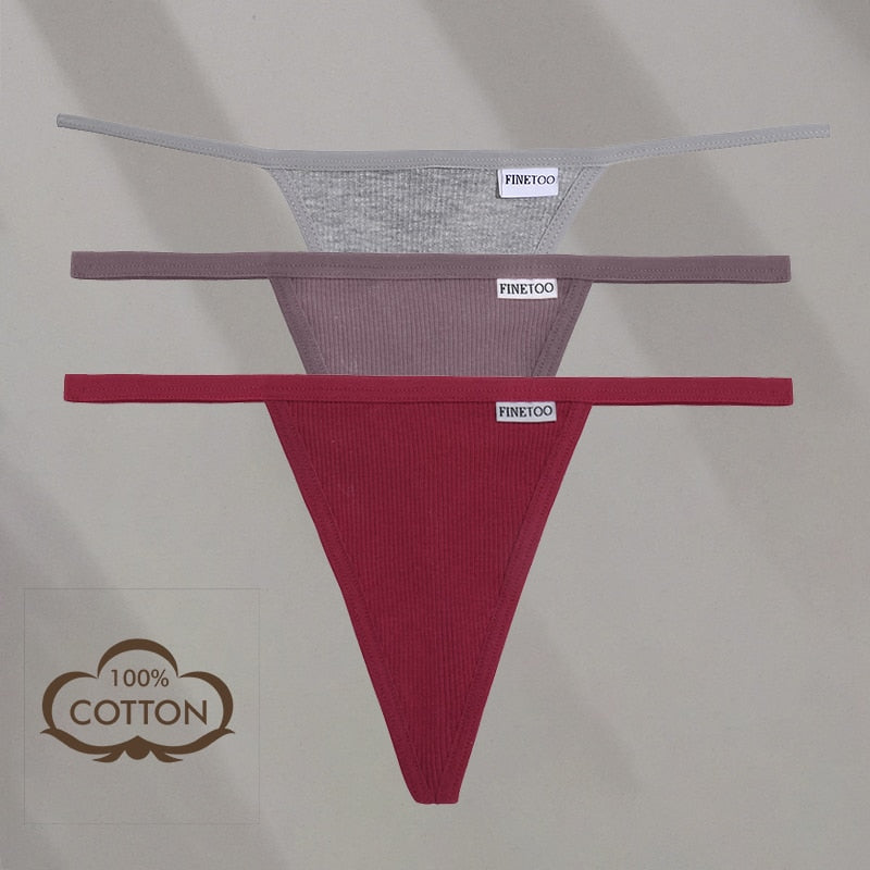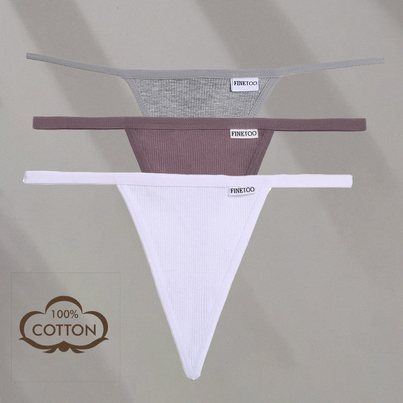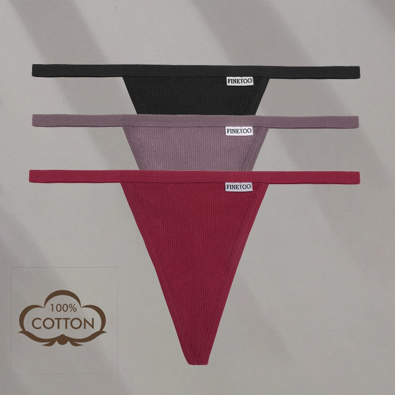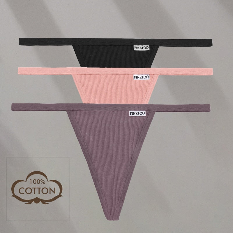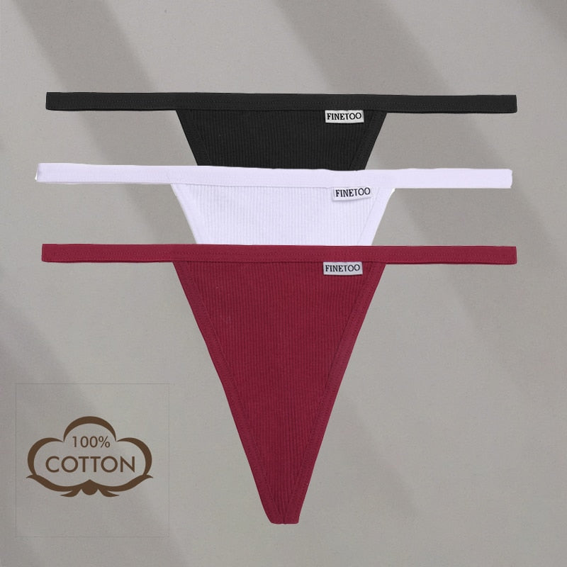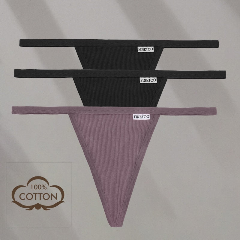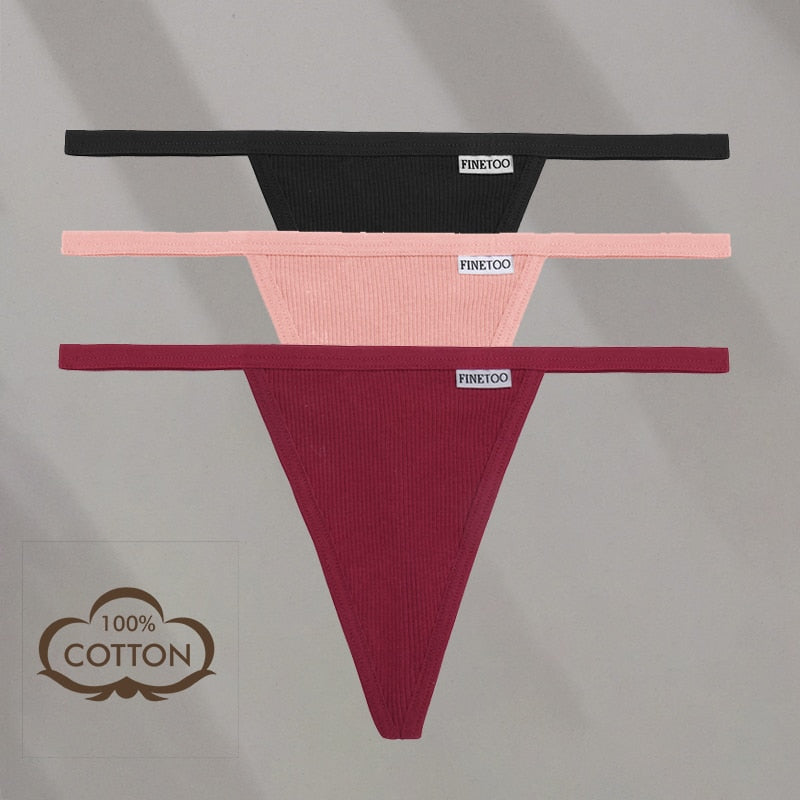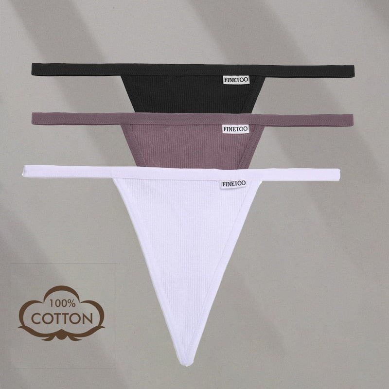 FINETOO 3PCS/Set M-XL Sexy G-string Panties Cotton Women's Underwear Girls Female Underpant Pantys Ladies Bikini Thong Lingerie