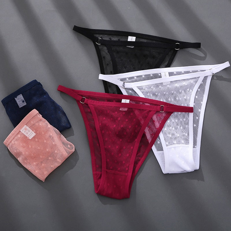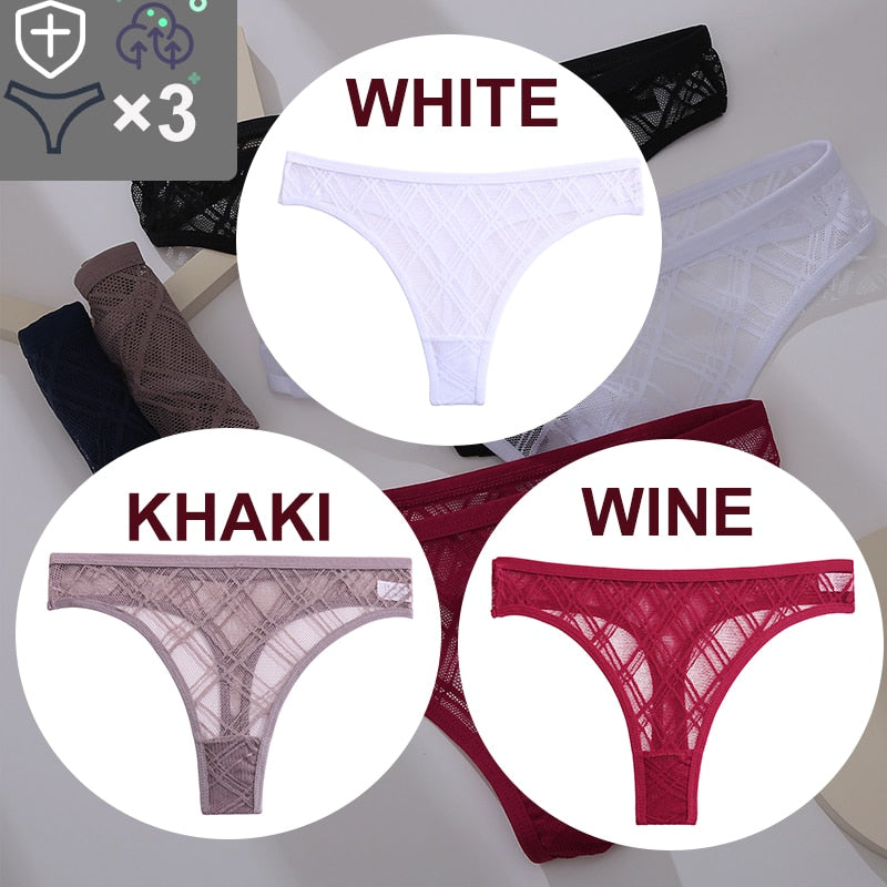 FINETOO 3PCS/Set Sexy Floral Transparent Women Thongs G-string Lingerie Lace Panties Low-Waist Femme Girls Briefs Mesh Pantys