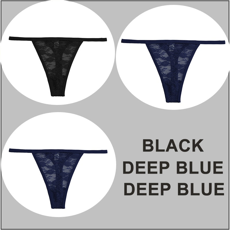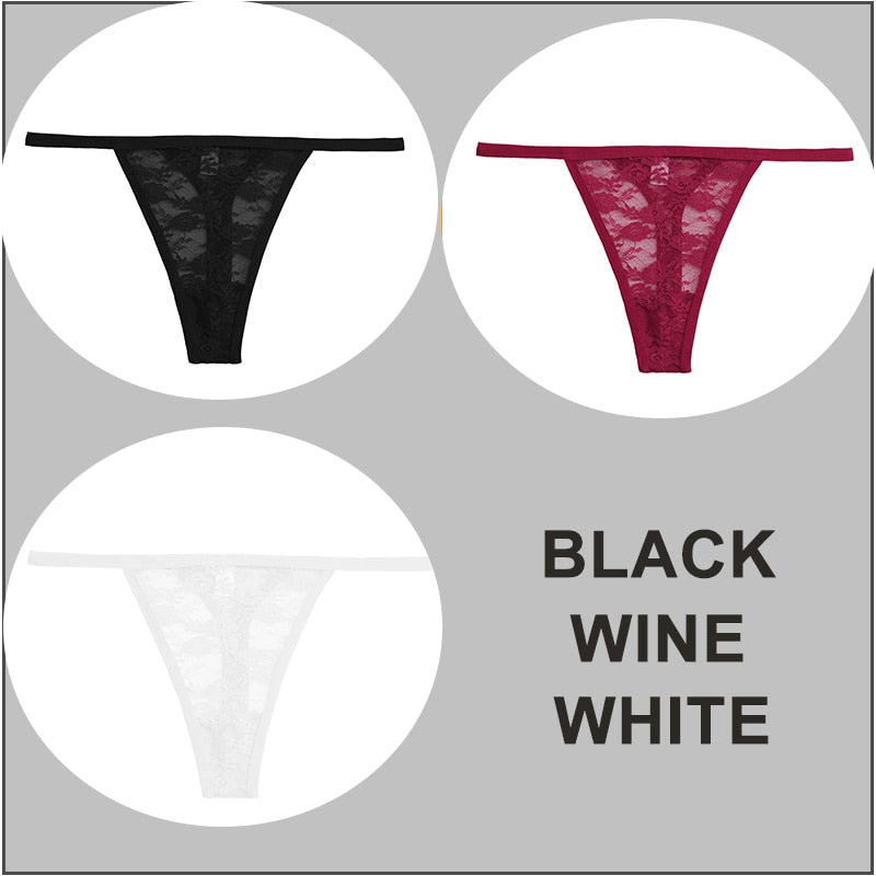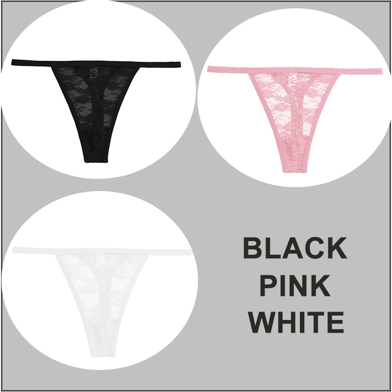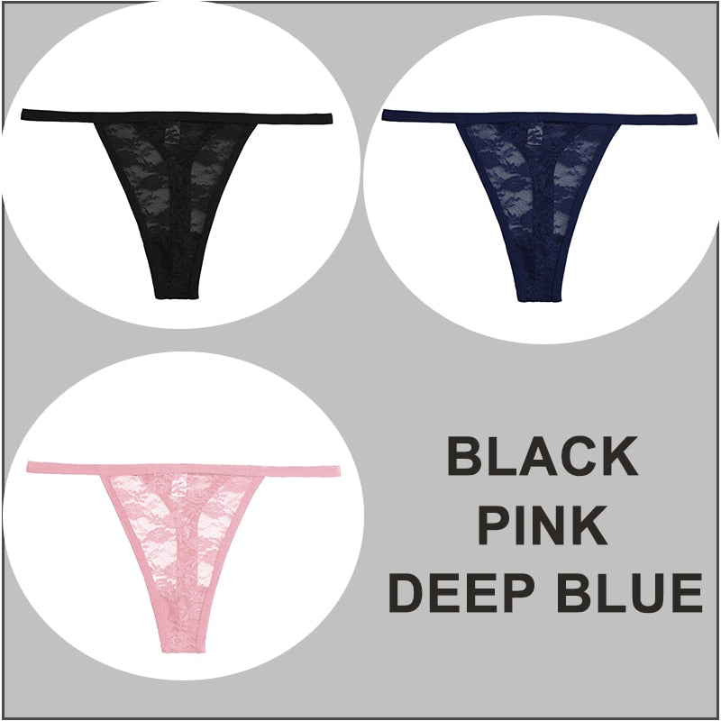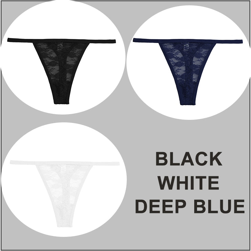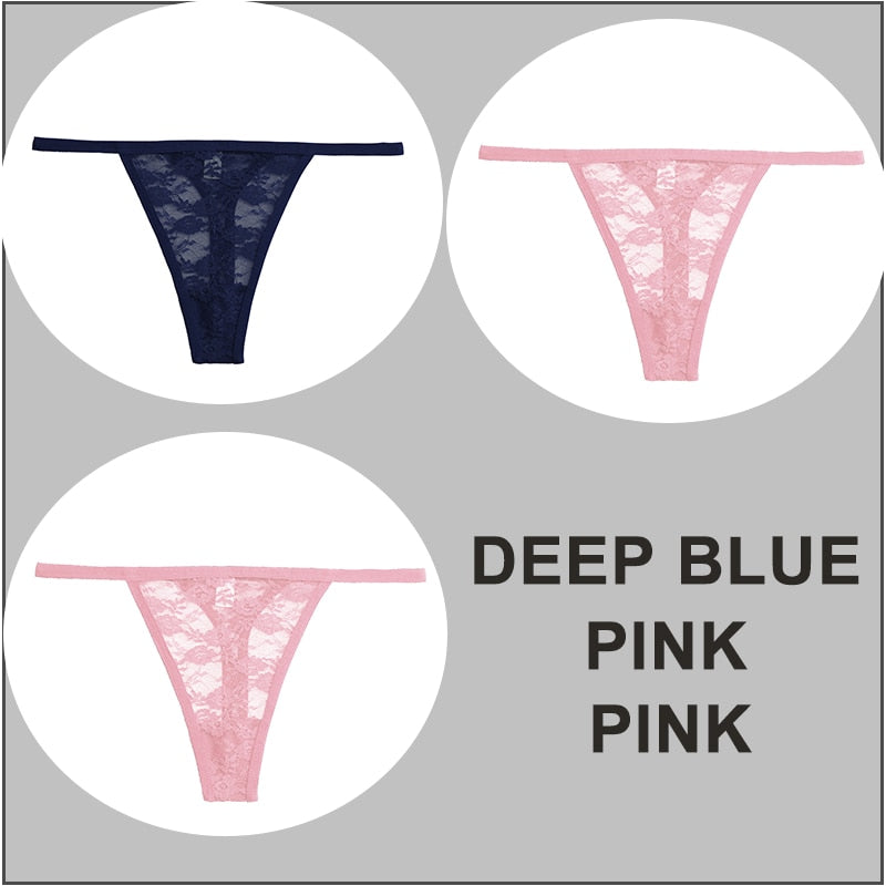FINETOO 3PCS/Set Sexy G-string Panties Women Thongs Lace Underwear Pantys Low-Waist Femme Underpants Mesh Transparent Lingerie