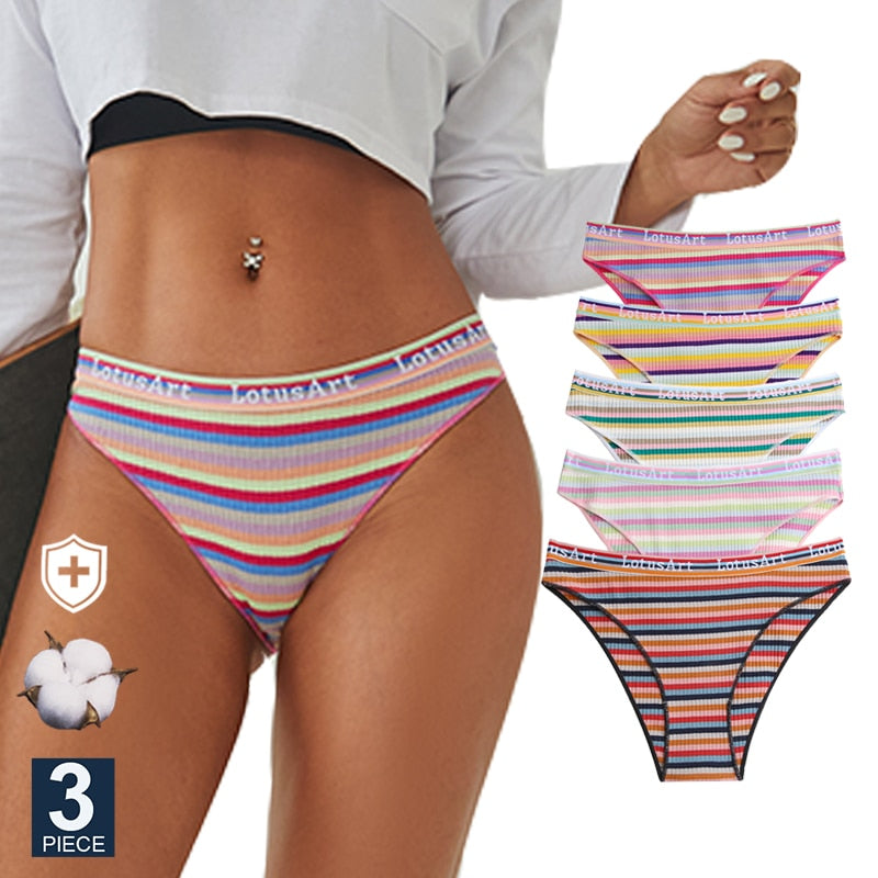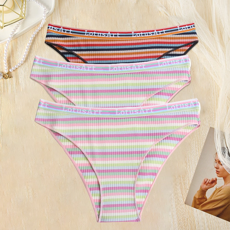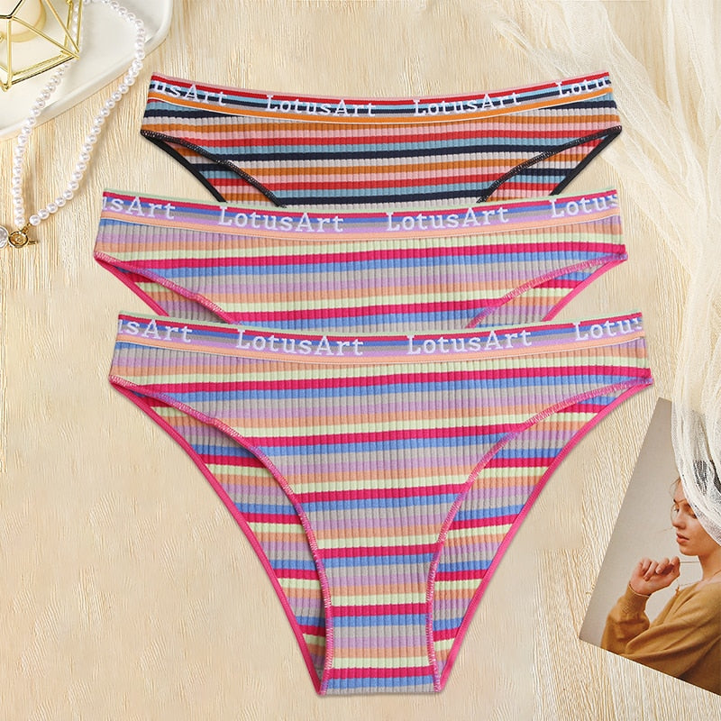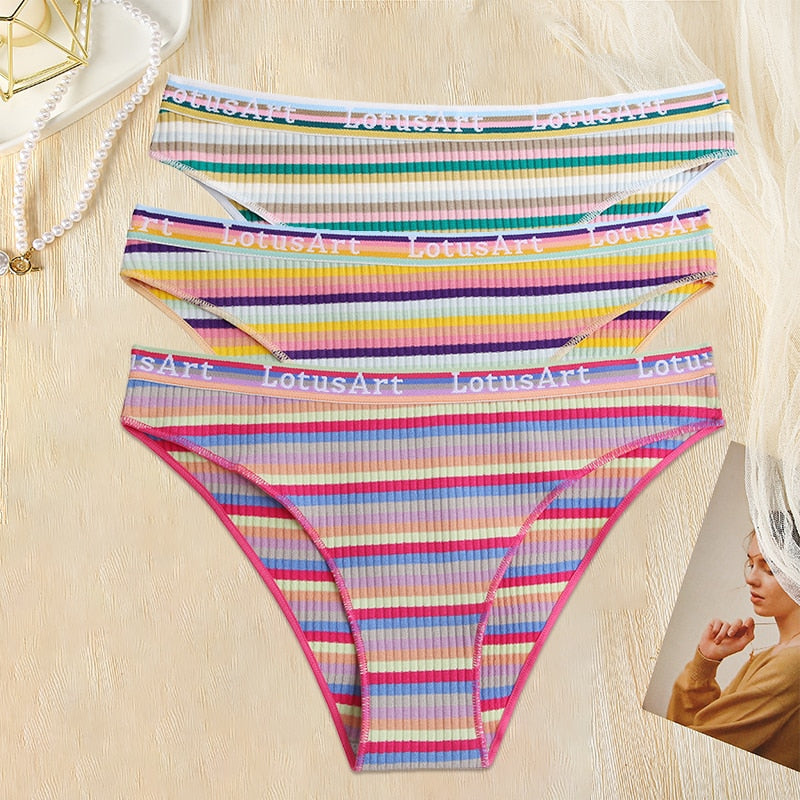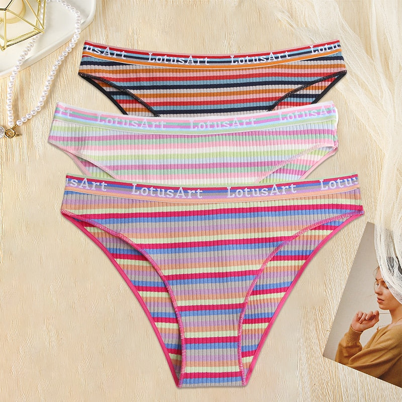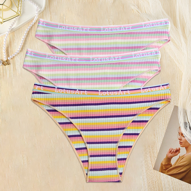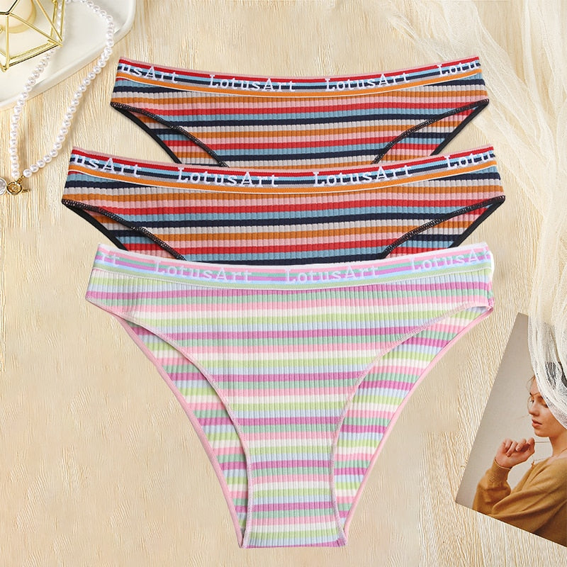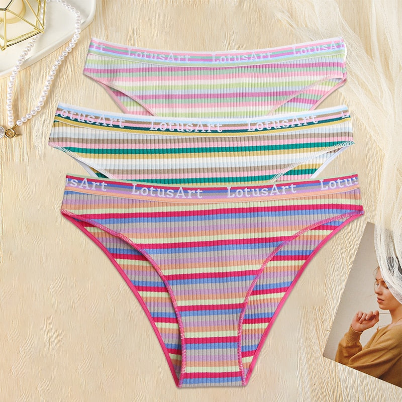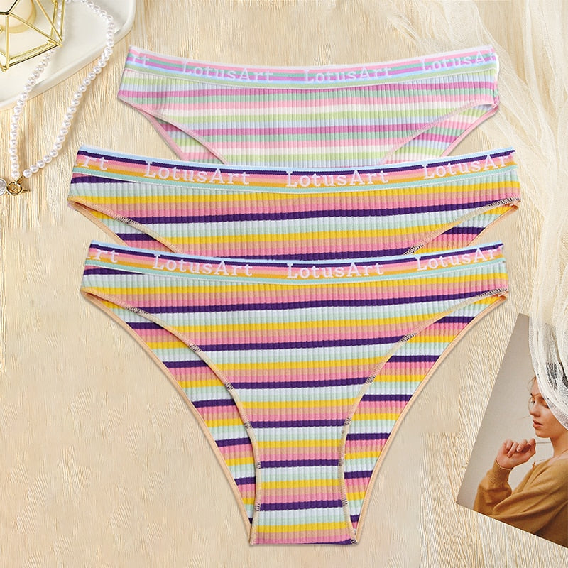 FINETOO 3PCS/Set Women Cotton Seamless Panties for Female M-XL Underwear Panty Sexy Colorful Striped Lingerie Letter Waist Brief