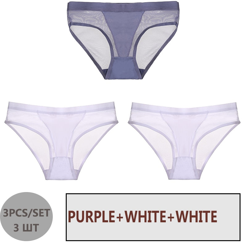 FINETOO 3PCS/Set Women Panties Sexy Mesh Lingerie Breathable Female Underwear For Woman Low-Rise Underpant Woman Panties Briefs